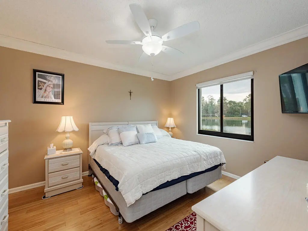 Lovely, updated home with lake view. Wood floors in living room, dining room and bedrooms. AC and hot water heater are newer. Impact glass windows and slider. Electric hurricane screen with remote. Located in a park-like setting with 2 pools and 2 clubhouses. new roofs, new carports, building recently painted. New Washer and dryer. Activities galore! card games, shuffleboard, art and sewing club, trips to plays, casinos, ball games. Men's golf league & more.