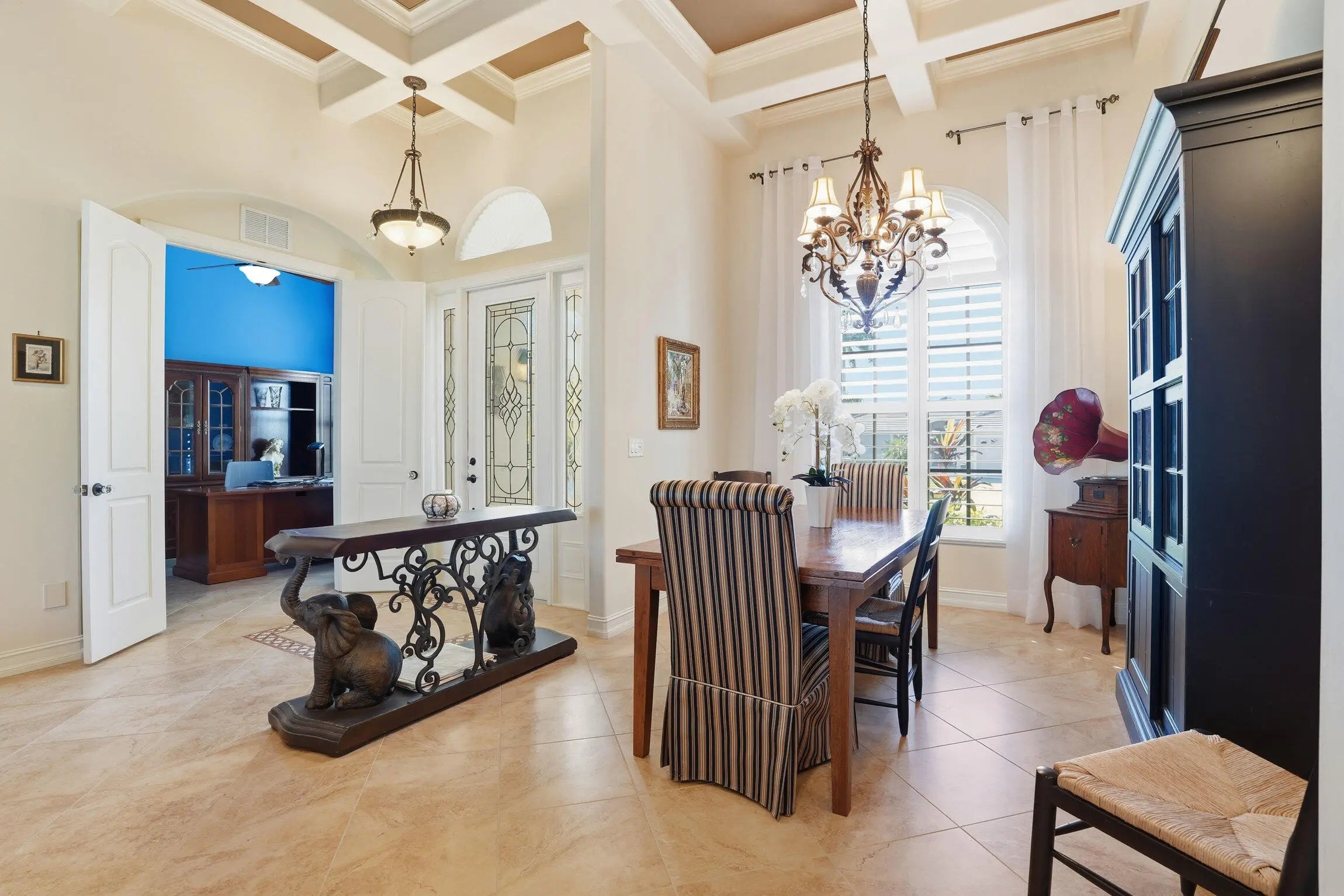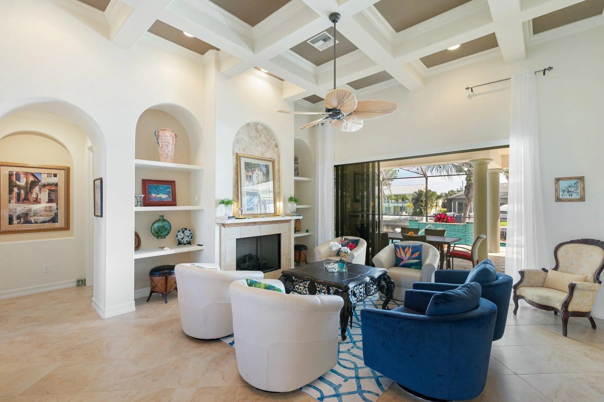 Built-in Features, Custom Cabinets, Entrance Foyer, Pantry, Volume Ceiling(s), Walk-In Closet(s), Wet Bar, Wood Fireplace, Breakfast Bar, Double Vanity