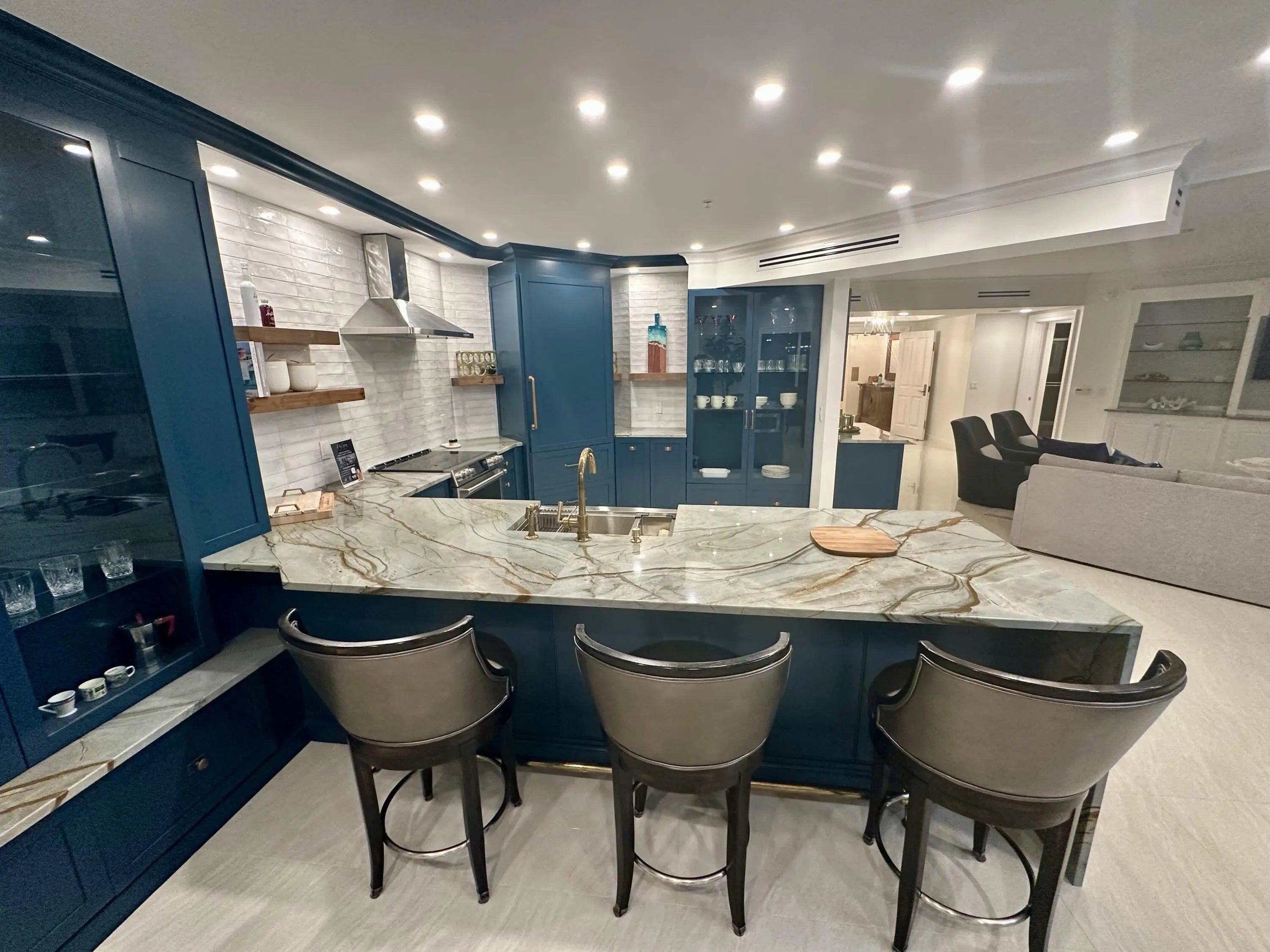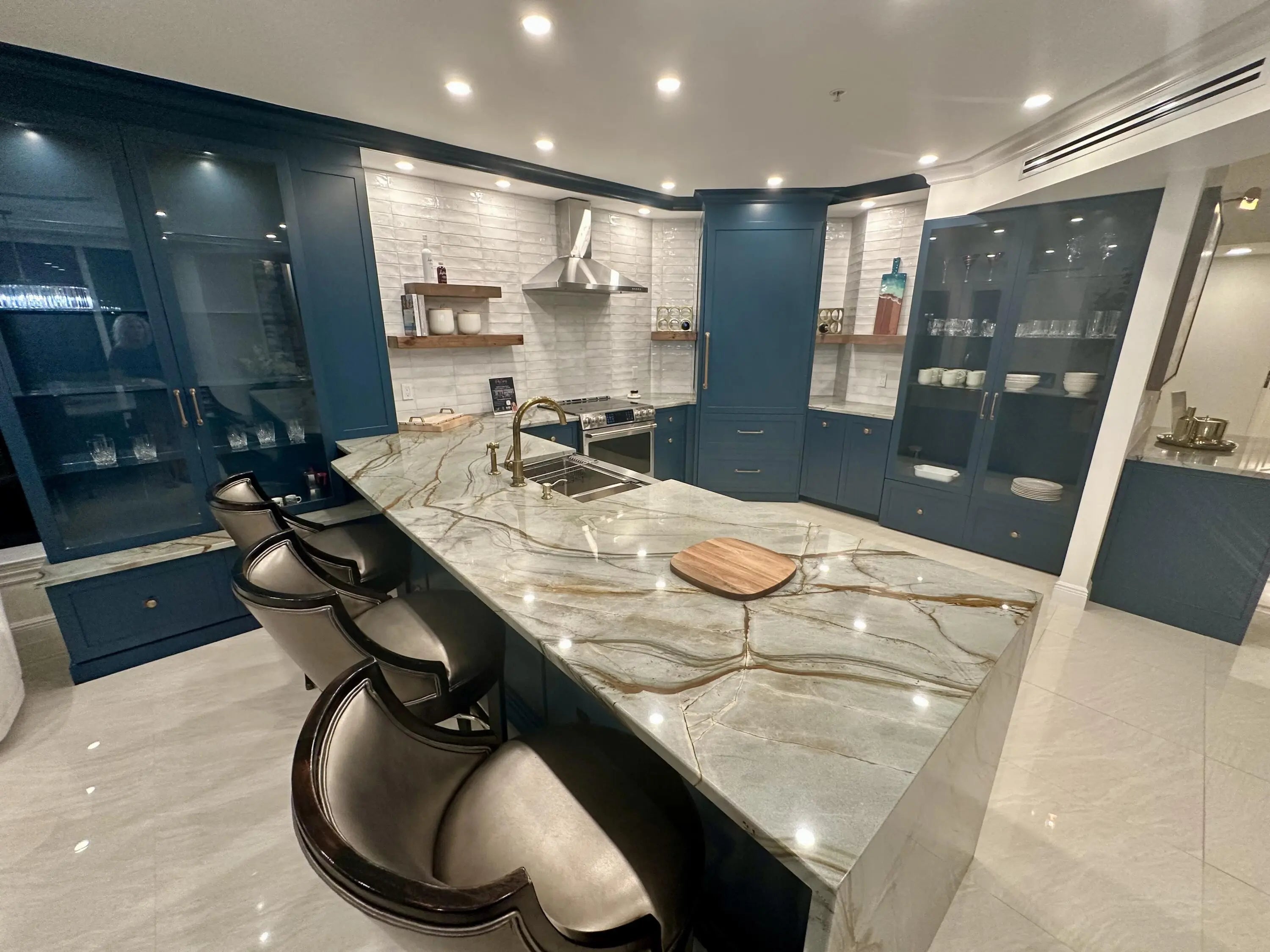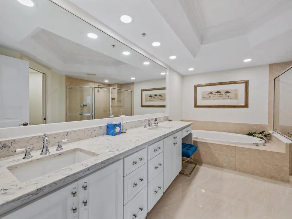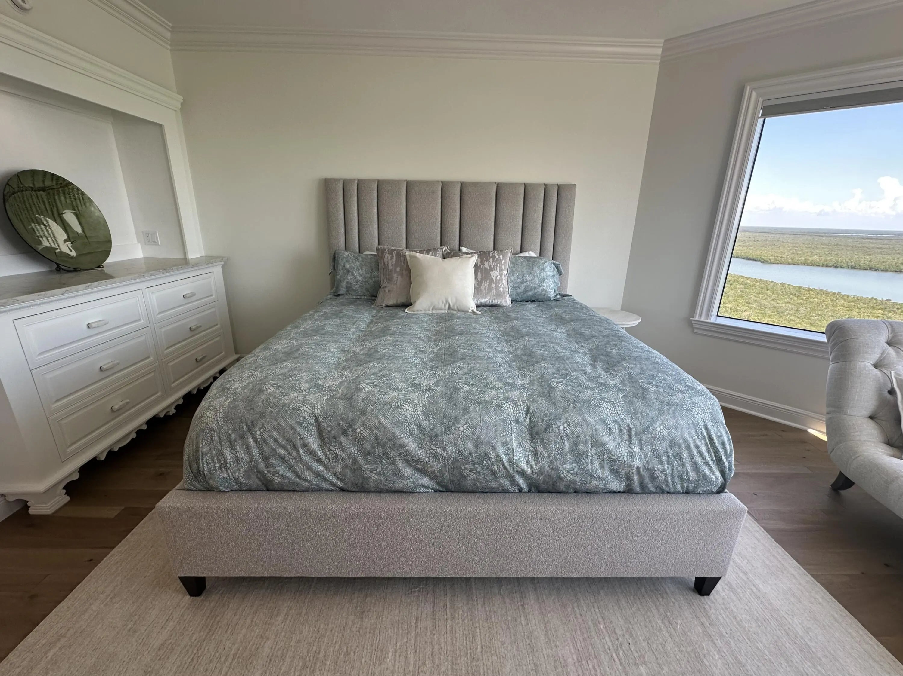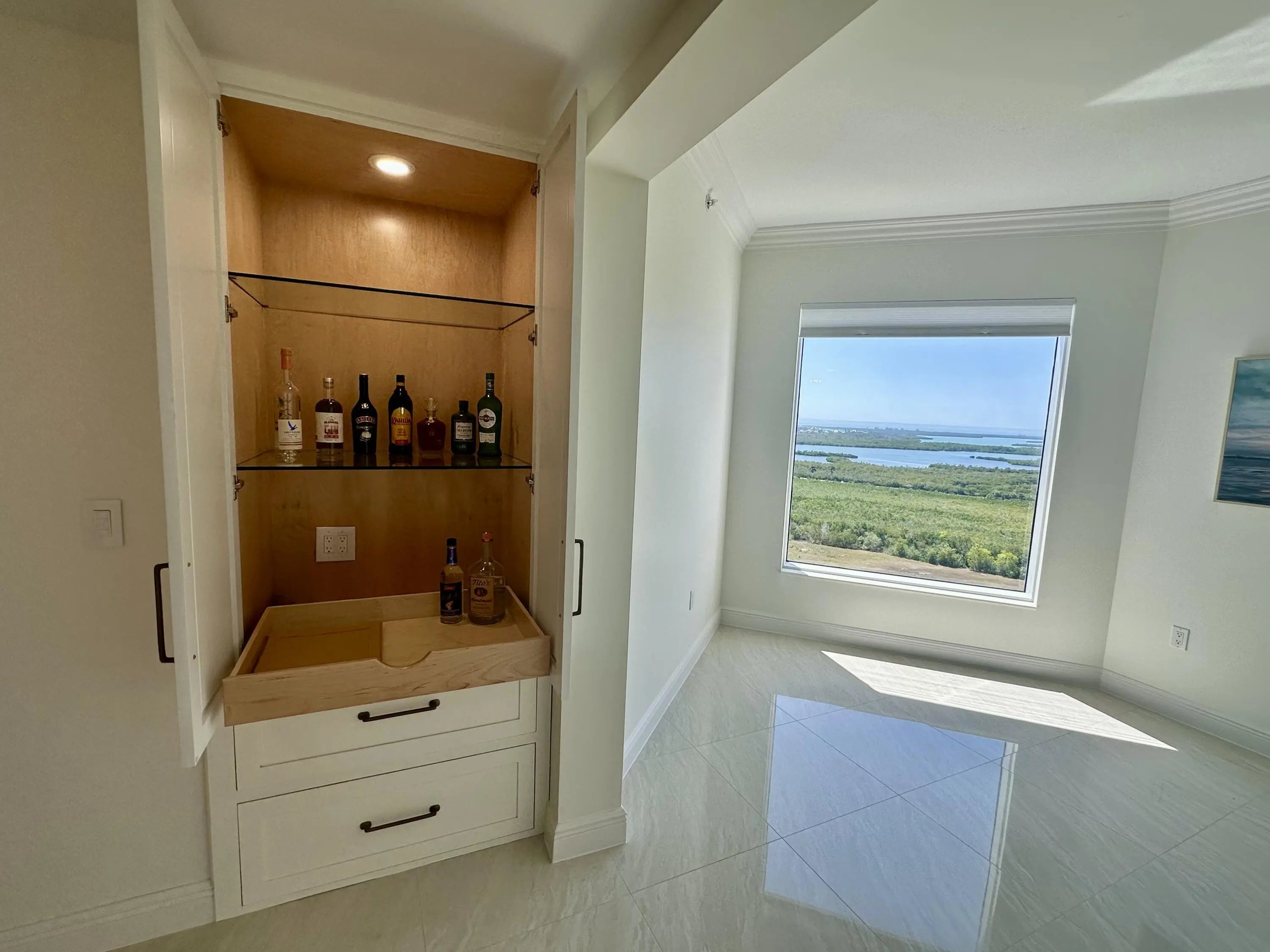 Welcome to the Aversana of Hammock Bay Golf & Country Club where exquisite luxury living meets jaw dropping views. This is high rise condo living on a whole new level...literally! This updated 2,800 SF residence perfectly blends elegance, comfort and style & comes completely Turn-Key ready for you to move right in. Complete with everything you see, every inch of this home has been carefully curated to offer a living experience that exceeds expectations, with the finest materials like marble & hard wood floors, an open and airy layout & panoramic views of the 10,000 Islands that will take your breath away from every room. The grand entrance to the unit via your private elevator set the tone for the sophisticated retreat within. This spacious corner unit has 3-bedrooms, 3.5-bathrooms & an office with never-ending views that are surely to distract your work load! The private owner's suite is located on the east side of the residence with it's own hallway, ample storage b/n the walk-in and 2 other closets & has its own patio entry just off the living room. The bathroom has dual quartzite vanities, crystal cabinet pulls, a soaking tub, shower & a water closet with pocket door. The kitchen & main living areas were redesigned & opened up to allow for more free flowing entertaining spaces & truly captivate the essence of the outdoor views from the second you step inside. It comes equipped with high-end appliances, floating shelves and a porcelain backsplash providing true function & modern design elements. The waterfall edge on the rare Quartzite kitchen counters make a bold statement to complete the look, all while adding timeless beauty. The living and dining areas seamlessly blend together and the custom built-in's glass shelves provide a gorgeously framed backdrop for your TV. Just around the corner from the kitchen & off the living room, a mini bar cabinet was added to provide the perfect cocktail prep area for your sunset cocktails on the veranda. The 2 guest ensuites do not disappoint in any way - each are very spacious with updated bathroom vanities, plenty of closet storage & yes, incredible views abound here too! They are on the other side of the unit and each has privacy from the other, all while offering the same stunning panoramic backdrops this tower is known for. These 2 bedrooms share a veranda & your guests will enjoy impressive views out to the Gulf of Mexico, Isles of Capri, Marco Island & all the way to Naples. This residence doesn't stop at its extraordinary interior; the Aversana Condominium offers exceptional resort-style amenities designed to enhance your lifestyle. The pool is perfect for sunning and swimming, the new outdoor tiki bar & barbecue areas are designed for entertaining guests or simply enjoy a meal with family and friends in this beautifully appointed outdoor space. Whether you're enjoying sunsets over the bay or relaxing by the pool, this unit provides the ultimate experience in SWFL luxury living.
