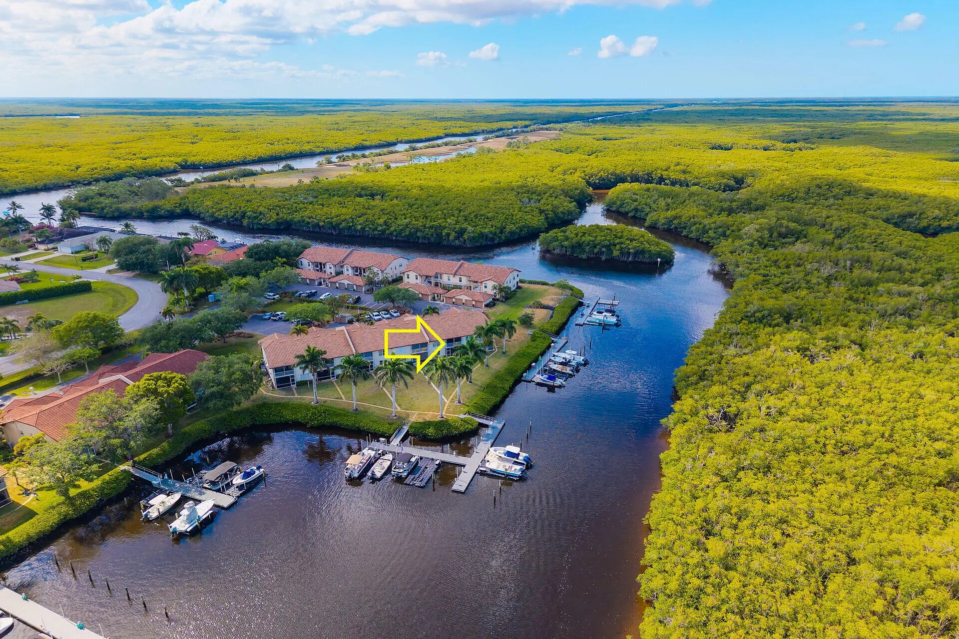 Waterfront Living Meets Modern Comfort - Best Value at $399,000! Welcome to your slice of paradise in Port of the Islands, Naples. This beautifully updated 2-bedroom, 2-bath second-floor condo offers serene canal, mangrove, and manicured lawn views—Florida living at its finest. Vaulted ceilings and a mix of bamboo wood and tile flooring create a spacious, airy feel throughout. The kitchen was tastefully updated with granite countertops, stainless steel appliances, and modern tile flooring—ready for entertaining or easy everyday living. Both bathrooms shine with new vanities, granite surfaces, and beautifully tiled showers. The in-unit laundry adds convenience, and the screened lanai - with electric storm shutter - is the perfect place to unwind and watch the water. Additional highlights include a single-car garage with built-in storage and an electric door opener, plus a newly constructed boat dock in 2023 with water and electric access and 2 fish cleaning stations - a boater's dream! Pet lovers rejoice: the association welcomes two furry companions under 25 lbs. Residents also enjoy a heated community pool and cabana, plus included internet, cable, and landscaping services. Affordable, updated, and move-in ready - this is the best waterfront value in the area!