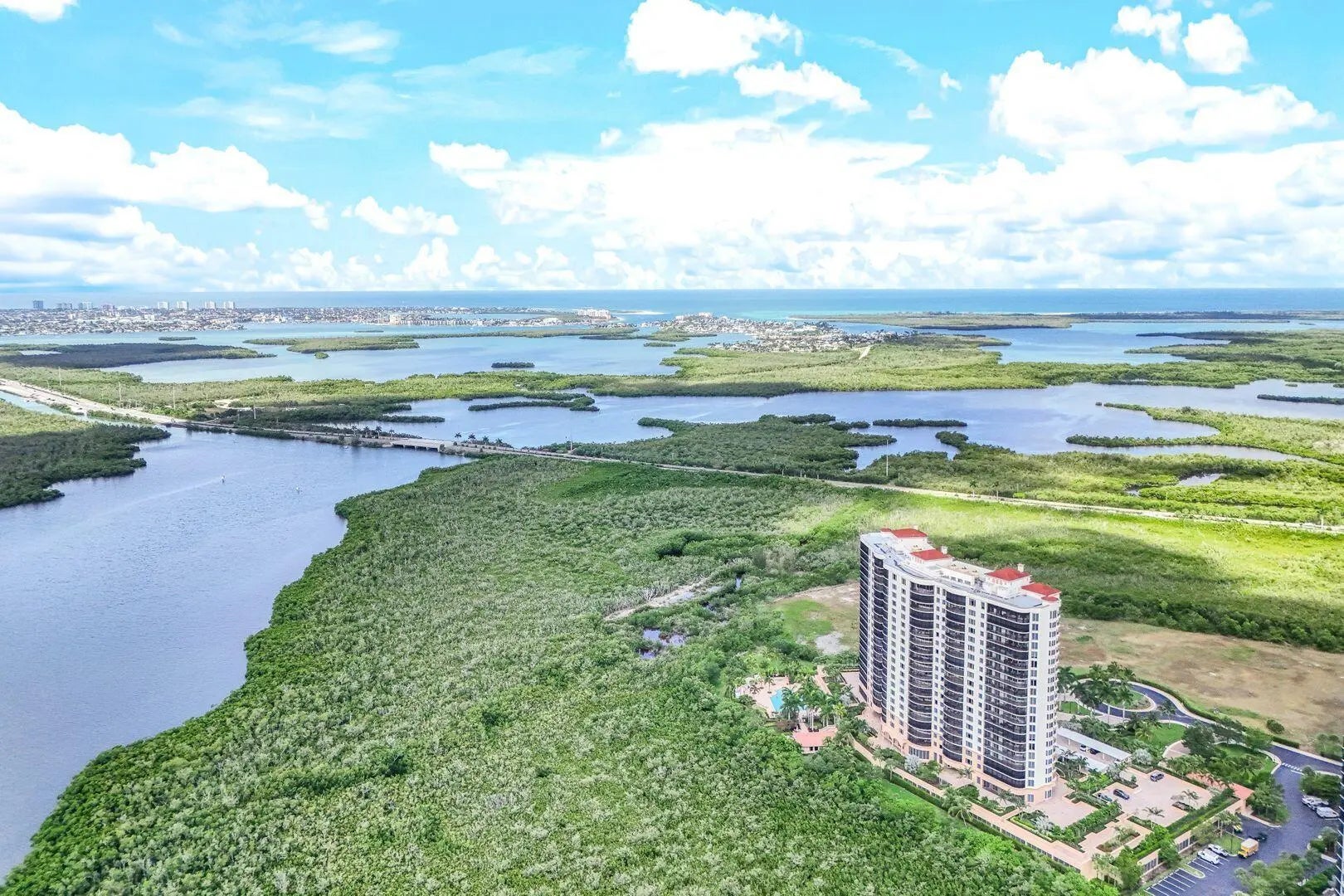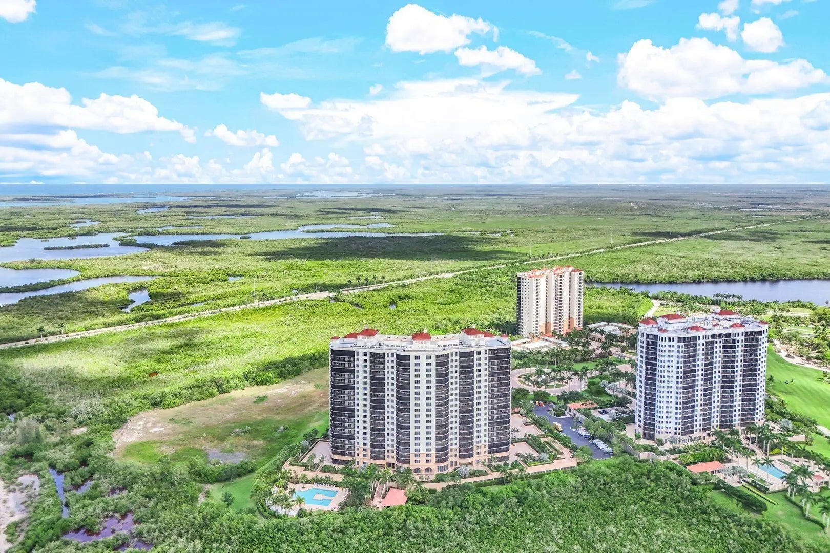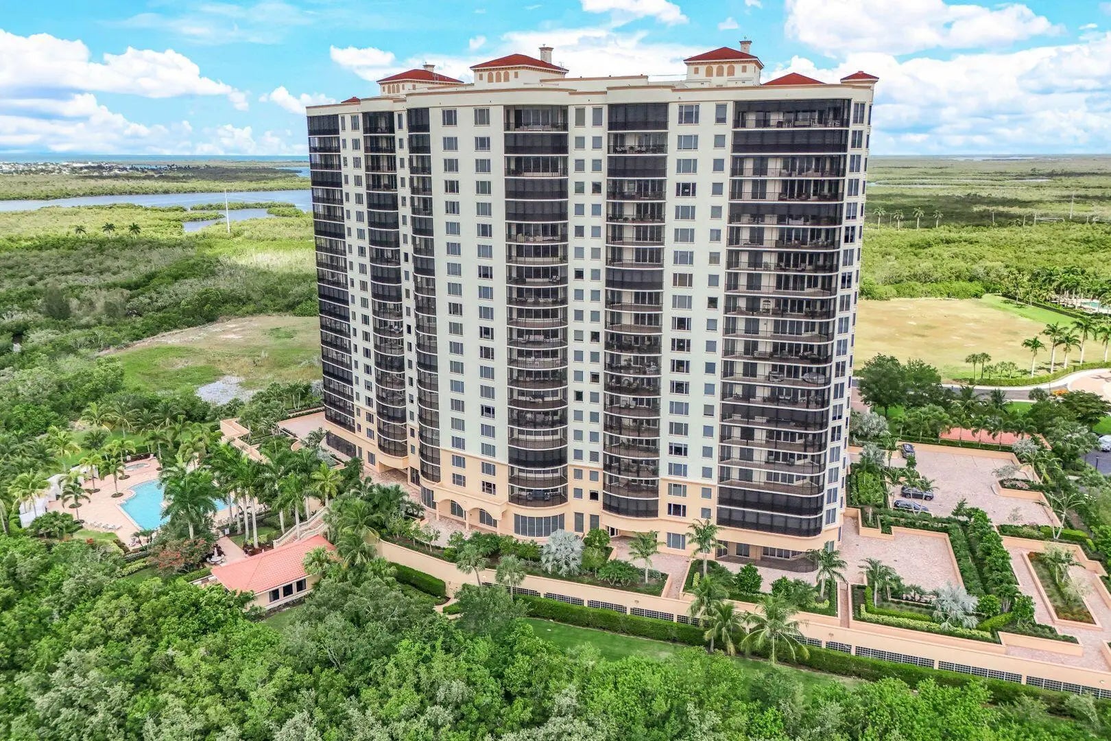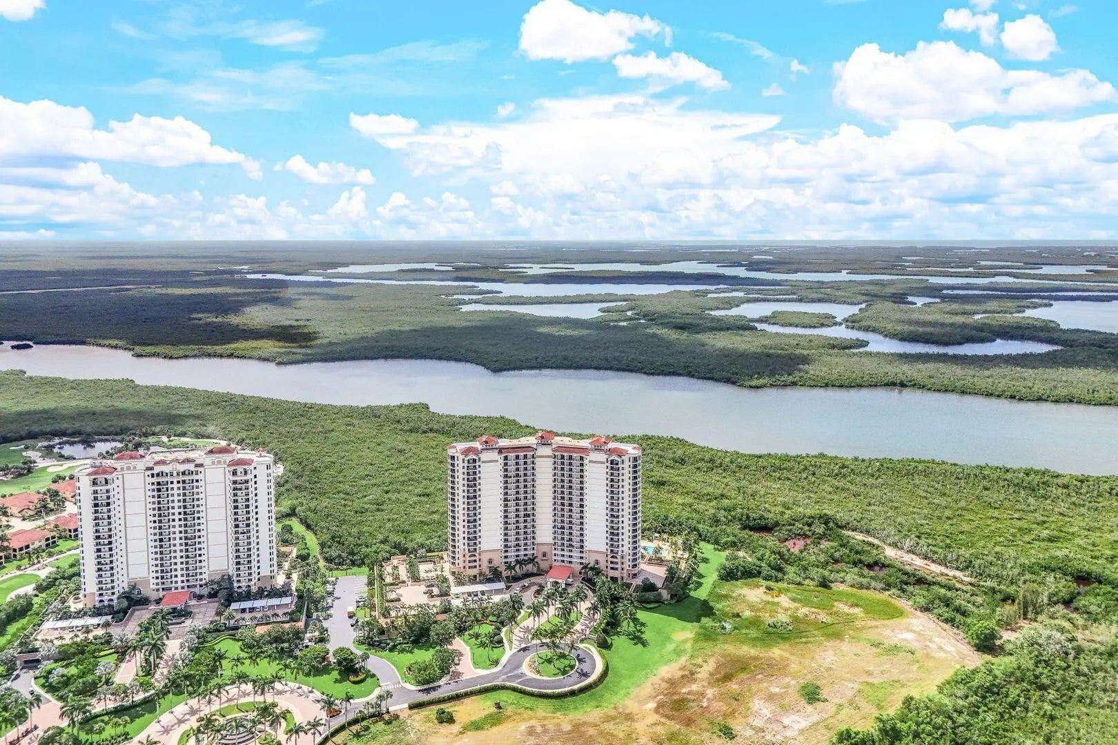 Lesina at Hammock Bay Golf & Country Club offers a rare blend of resort living and refined elegance—gated, prestigious, and rich in world-class amenities. This expansive, tastefully furnished 4-bedroom, 3.5-bath luxury condo lives like a sprawling private home, and is offered at pricing rarely seen in a community of this caliber making it an exceptional opportunity for discerning buyers. Arrive via secured elevator, to a private foyer. Enter to the open living grand salon, formal dining and family room areas all with views and access to the spectacular 45' wrap-around screened terrace. The chef's kitchen features a breakfast nook, breakfast bar, and a private balcony, perfect for hosting and everyday comfort. A sanctuary of privacy, the primary ensuite features a spa like bath with soaking tub, a walk-in shower, his-and-hers closets, and a lanai with stunning views. Two charming guest suites share a private balcony, while a fourth bedroom (currently an office) boasts a terrace. This home offers elegant indoor outdoor living and oodles of amenities. 3 points set Lesina apart, having completed the newly required SIRS (Structural Integrity Study) with no resulting assessments, ensuring a worry-free investment. This 2nd floor retreat also delivers lush tropical panoramic views of serene waterways with the skyline of Marco Island in the distance and a front-row seat to the resort-style pool oasis and cabanas, offering a warm, inviting ambiance. Lesina pampers residents with an elevated resort lifestyle, including a stunning pool & spa, world-class fitness center with sauna, theater, social room, bar and catering kitchen, billiards, library/games room, outdoor grills, and more. Residents benefit from secure elevator access, 2 deeded under-building parking spaces and 2 climate-controlled storage units, and on-site management with a welcoming front desk host. Nestled between Naples and Marco Island's world-famous beaches, restaurants and shopping, this serene, elegant enclave offers luxury, space, and exclusivity rarely found in the area. A rare opportunity to secure a move-in-ready, spacious condo at an exceptional value.