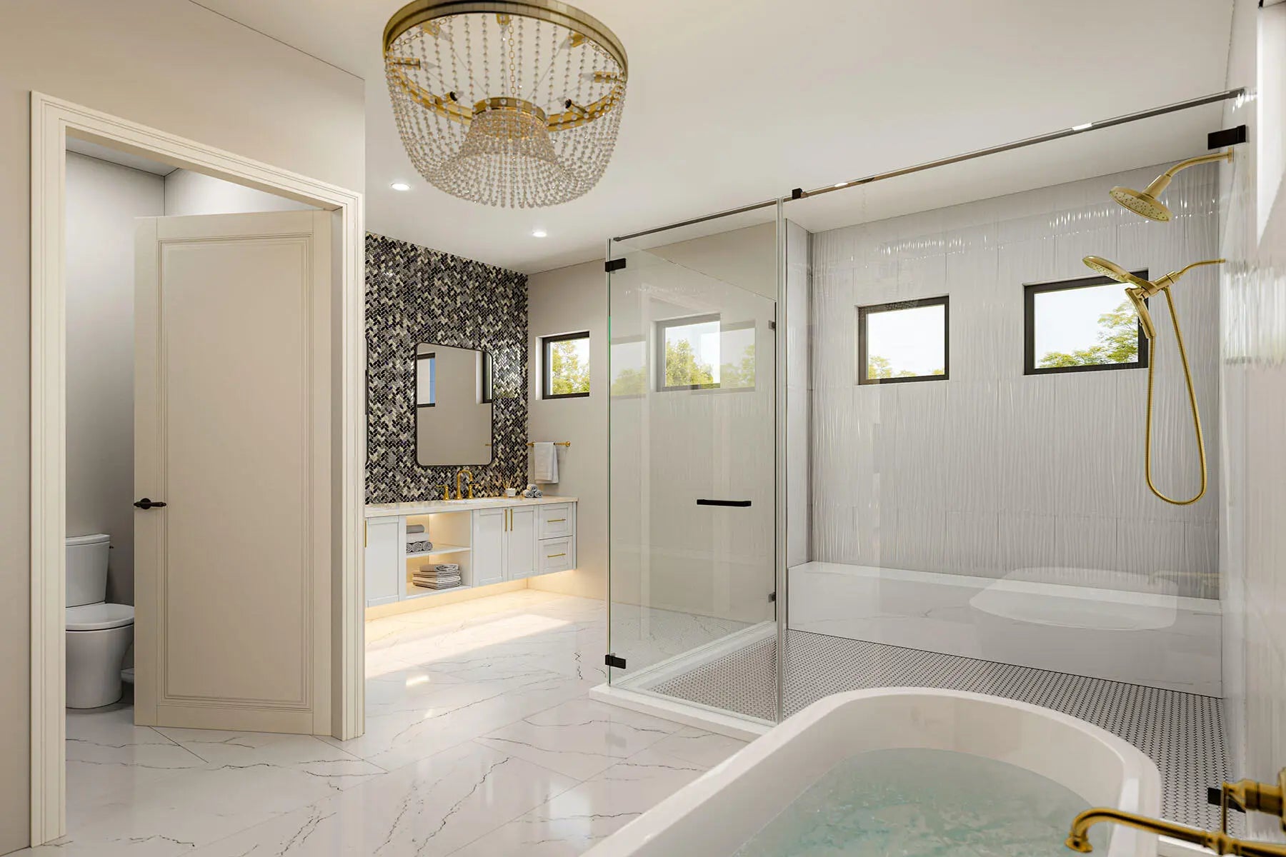 Built-in Features, Custom Cabinets, Custom Closets, Electric Fireplace, Entrance Foyer, Pantry, Tray Ceiling(s), Volume Ceiling(s), Walk-In Closet(s), Wet Bar, Breakfast Bar, Double Vanity