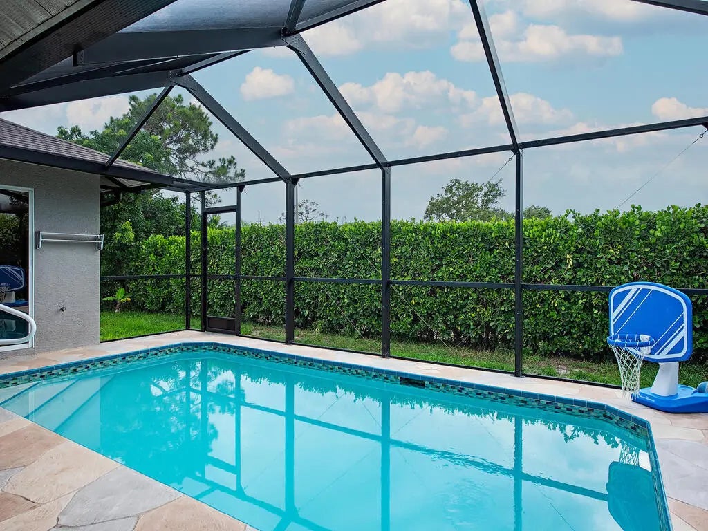 Welcome to your dream home in desirable Marco Island! This updated single-family pool home exudes Florida charm and modern elegance. Step inside to an inviting open floor plan that offers a graceful flow, perfect for both entertaining and everyday living. The beautiful solid surface countertops and stainless steel appliances in the kitchen create a stylish yet functional space for culinary enthusiasts. The master bedroom is a true retreat, featuring a luxurious freestanding soaking tub and a modern walk-in shower, ensuring your personal oasis for relaxation. Step outside into the screened lanai, where you can unwind by the inviting pool, ideal for soaking up the sun or enjoying a refreshing swim. Located just minutes away from the vibrant shopping, dining, and entertainment options that Marco Island has to offer, this home allows you to experience the best of the Florida lifestyle. Don't miss the chance to make this stunning property your own!