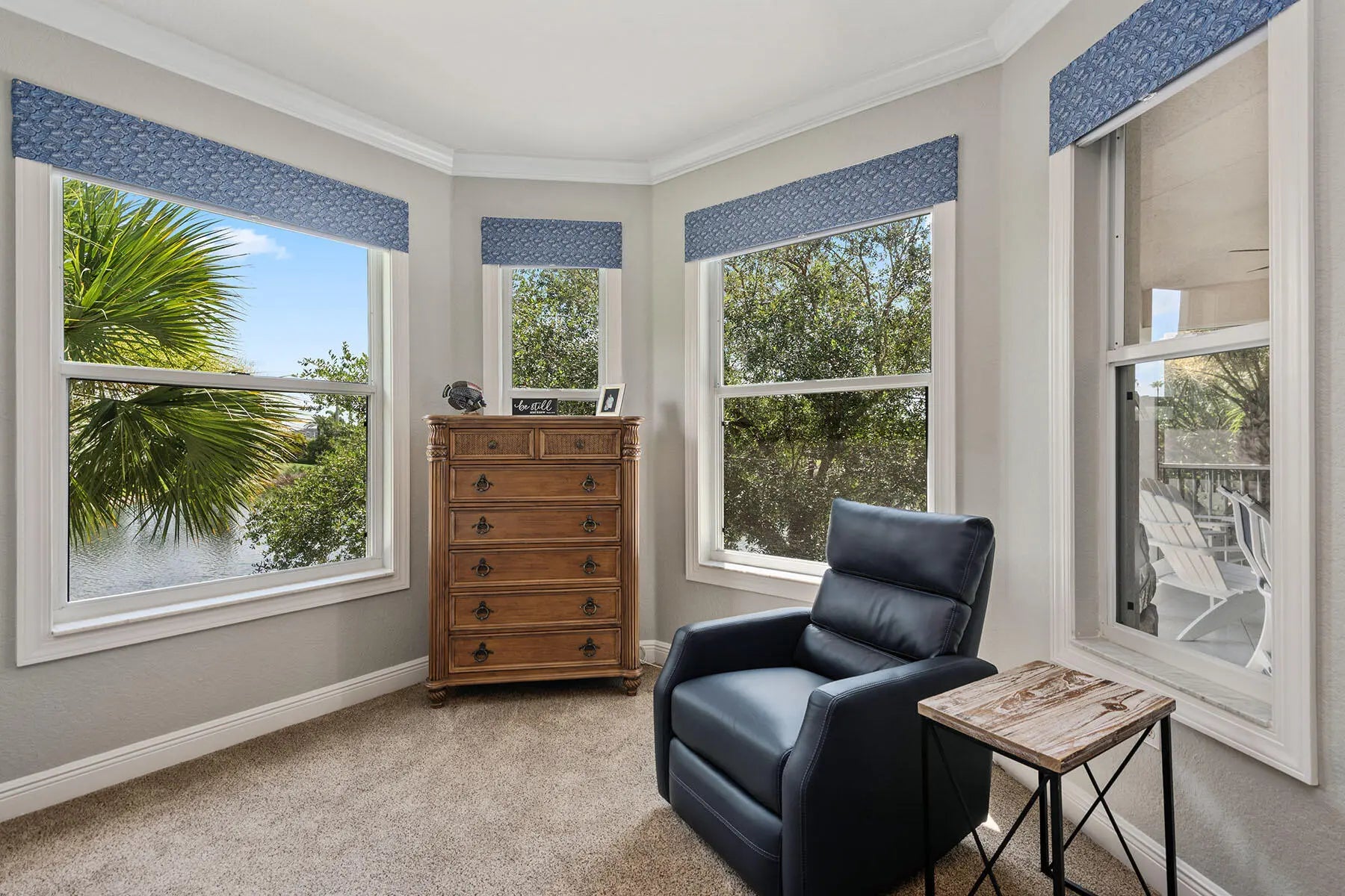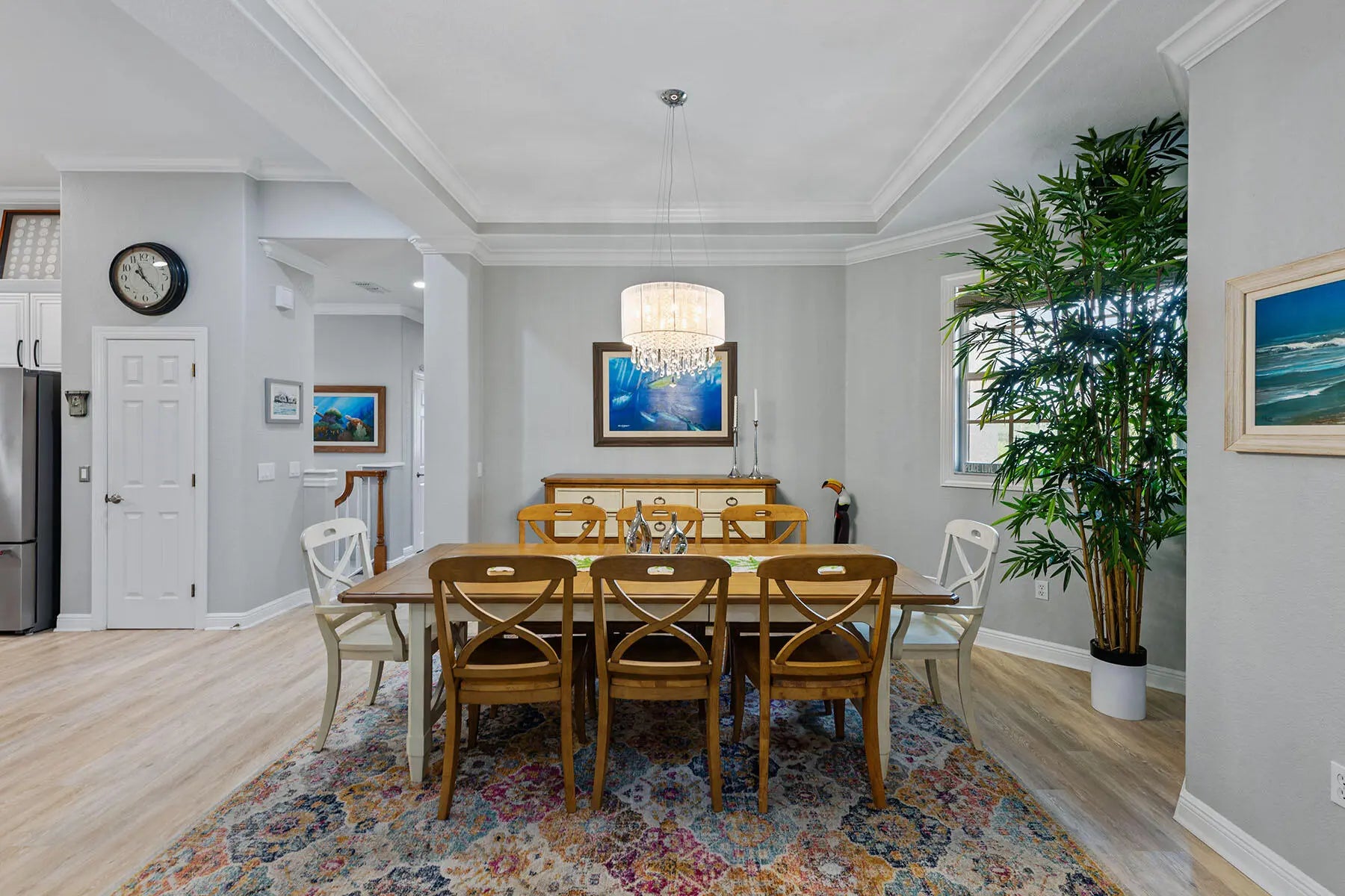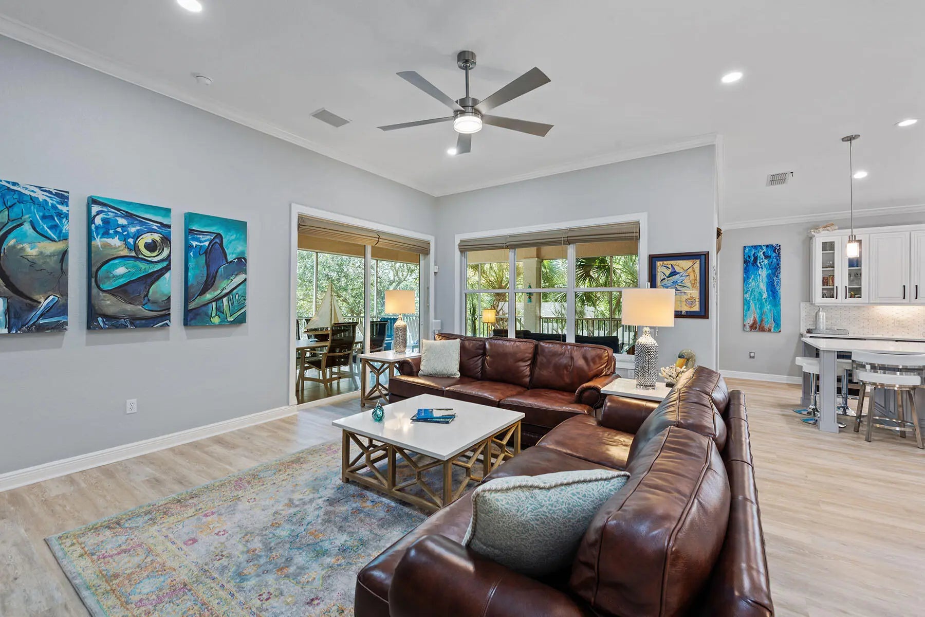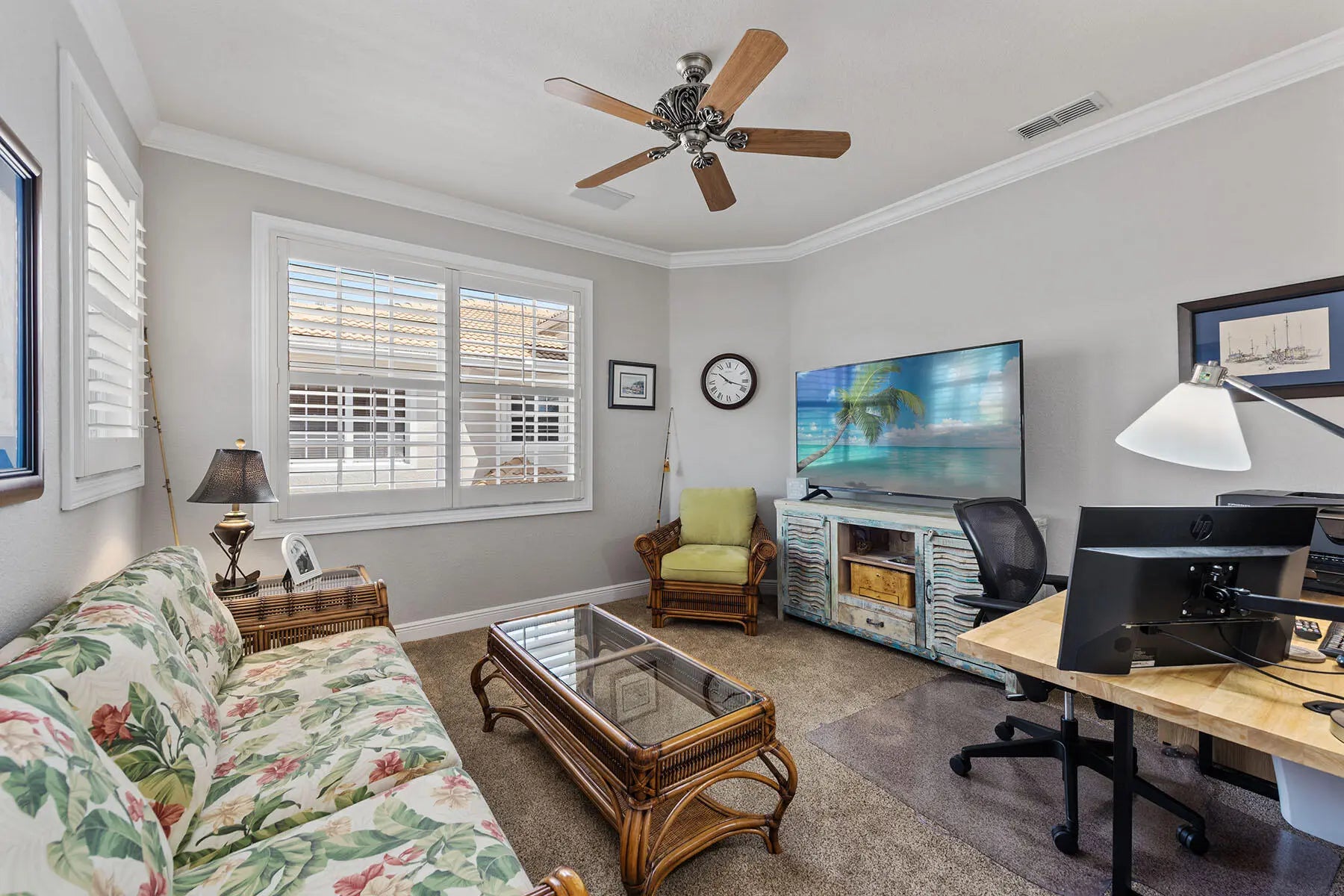 Experience a refined coastal retreat with immediate GOLF membership in the popular Juliana Village at the highly sought-after Naples Lakes Country Club. This spacious Key West floor plan coach home offers 3 bedrooms plus a den, 3 full baths, and an attached 2-car garage, all complemented by tranquil lake and golf course views. With eastern exposure, a screened lanai, and a serene backdrop of lush tropical landscaping, this furnished residence invites seamless indoor-outdoor living. The covered lanai features tile flooring, a ceiling fan, and a peaceful vantage point over the 12th hole, perfect for enjoying morning coffee or evening sunsets. Inside, the open-concept layout showcases new LVP wood-look flooring in the main living areas, crown molding, and LED recessed lighting. The updated gourmet open kitchen is a showpiece with gorgeous white cabinetry, under-cabinet lighting, quartz countertops, beautiful tile backsplash, large island with bar seating, pendant lighting, and a window above the sink. Premium KitchenAid stainless steel appliances include a French door refrigerator/freezer, double oven range, microwave, dishwasher, and wine cooler. The formal dining area features a tray ceiling and stunning chandelier, while the living room offers a modern ceiling fan and sliding glass doors that open directly to the lanai. The owner's suite is a serene escape with private lake views, lanai access, a spacious walk-in closet with built-ins, and a spa-like bath boasting dual white quartz vanities with full-width mirror, a glass-enclosed walk-in shower, separate soaking tub, and plantation-shuttered window with palm views. Two guest bedrooms each feature plantation shutters and ceiling fans—one with an en-suite bath, the other adjacent to a full bath with a shower-tub combo. A den with double-door entry makes the perfect home office or study. The laundry room is complete with a GE Profile washer and dryer, utility sink, and overhead storage. As a resident of Naples Lakes Country Club, one of the most popular bundled gated golf communities in the area, you'll enjoy an Arnold Palmer-designed championship golf course, resort-style pool and spa, Har-Tru tennis courts, pickleball, bocce, fitness center, clubhouse dining, a full activity and event calendar, and Juliana Village's own neighborhood pool and spa. Ideally located just minutes from Fifth Avenue and Third Street in downtown Naples, shopping, dining, art galleries, parks, executive airport, pristine beaches and all popular Southwest Florida attractions, this home offers the best of luxury living with golf, recreation and relaxation at your doorstep.