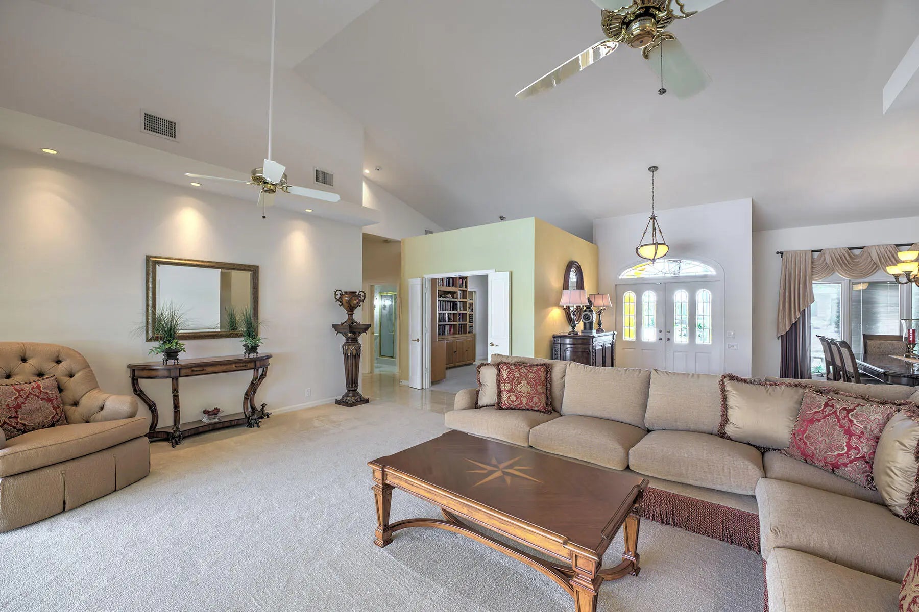 Eat-in Kitchen, Custom Cabinets, Entrance Foyer, Gas Fireplace, Pantry, Volume Ceiling(s), Walk-In Closet(s), Wet Bar