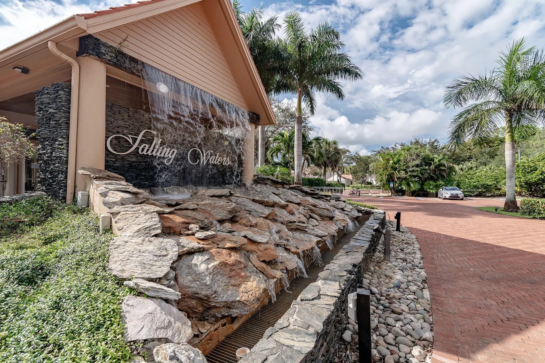 Welcome to Falling Waters - A gated, charming, resort-style oasis in Southwest Florida, where every day feels like a vacation. This vibrant community features an impressive 11,000 square-foot tropical pool - one of the largest in the region - framed by lush landscaping and shaded Tiki huts. Beyond the poolside paradise, enjoy a full menu of amenities: clay tennis courts, putting green, bocce ball, shuffleboard, horseshoes, scenic walking paths through tropical surroundings. The Clubhouse is a hub of activity, offering water aerobics, library, kitchen, bingo, Mahjong, poker, dance floor & gatherings. Perfect location, just minutes from Naples' sandy beaches, exceptional shopping, renowned dining plus easy access to groceries, hospitals, & churches. Let's talk about the condo- step into this immaculate, fully furnished, turnkey, 2nd-floor unit with an open-concept layout, abundant natural light, white kitchen with breakfast nook boasting a large window, spacious Great Room with dining area. The primary suite with en-suite bath & walk-in closet, guest bedroom with full bath, separate laundry room, extra cabinetry & much loved laundry tub. Detached 1 car garage with plenty of extra storage. Pet friendly & low HOA fees. Many updated items - call for details. Update include freshly painted interior, new items are washer/dryer, dishwasher, refrigerator, A/C unit, hot water unit, sofa & loveseat, new flooring in both bedrooms, tiled lanai.