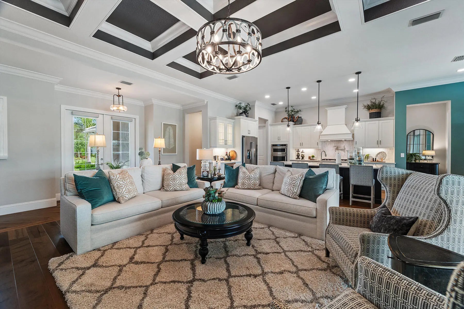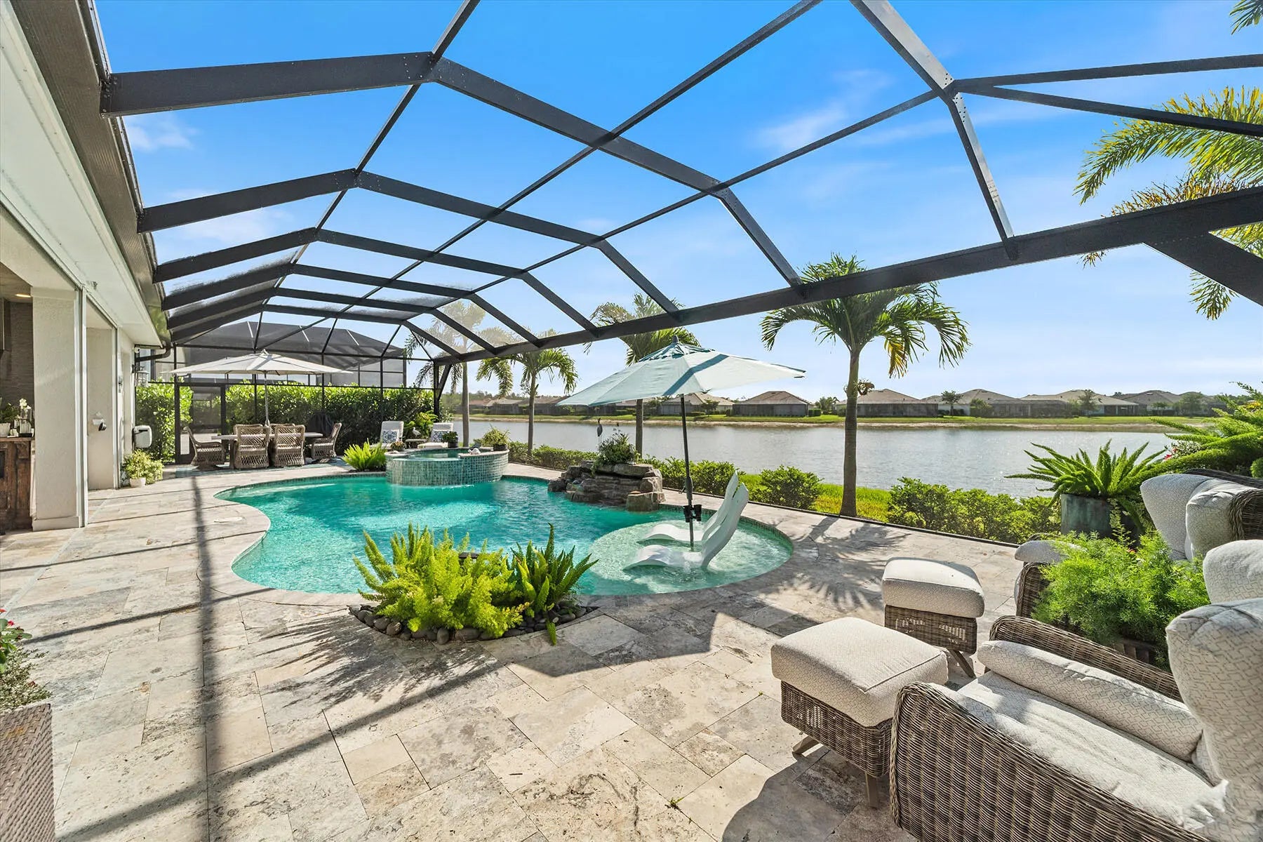 Stunning Coastal-Inspired Home in Naples Reserve. This sophisticated coastal residence, built in 2022, is a perfect example of elegant living in the desirable Naples Reserve community. Offering four bedrooms or three plus den, three full baths, and 2,467 square feet of thoughtfully designed space, the popular Wisteria floor plan by Stock Development balances style, comfort, and functionality. A spacious three-car garage, enhanced with insulated doors, custom cabinetry, and a mini split A/C unit, adds everyday convenience. Some of the interior highlights include extensive upgrades which set this home apart, including Storm-Smart hurricane shutters, a whole-house Generac Generator, and impact-resistant windows and doors. Inside, refined details abound: 9-inch crown molding, solid wood doors, prefinished hardwood flooring, plantation shutters, custom closet systems, and professionally designed finishes throughout. The kitchen is a culinary showpiece with quartz countertops, upgraded cabinetry and hardware, pot filler, KitchenAid front-door refrigerator, and high-end appliances. Convenient cabinet for entertaining with bar refrigerator and glass-front cabinetry. A custom great room with beamed ceiling and built-in wall system with lighting provide ideal spaces for entertaining or relaxing. All the bathrooms are beautifully finished with wallpaper, bidets, custom tile accents and upgraded cabinetry. Moving to the stunning outdoor living space, the one-of-a-kind lanai is more than exceptional and designed as an extension of the home's interior comfort. Features include a saltwater pool and spa with rock water element, umbrella stand, and Pentair system, travertine tile flooring, wood plank ceiling, fireplace, custom bar and grill area, and overhead speaker system. A tumbled rock waterfall accent and lush landscaping with custom lighting create an extraordinary outdoor environment that beckons from the moment you enter the home. The primary bedroom suite offers a custom-designed walk-in closet, elegant bath with upgraded cabinetry, and a spacious shower and soaking tub, blending luxury and practicality in a gorgeous environment. The beautiful guest bedrooms and bath have convenient access to the lanai without going thru the living area. Naples Reserve provides an unmatched lifestyle with resort-style amenities including pickleball, tennis, bocce, volleyball, a state-of-the-art fitness center, two dog parks, boating, full-service dining, poolside tiki bar, and a full-time social director. Located between downtown Naples and Marco Island, the home is minutes from beaches, golf, shopping, dining, and water recreation. Professionally decorated and meticulously maintained, this residence is truly a must-see.