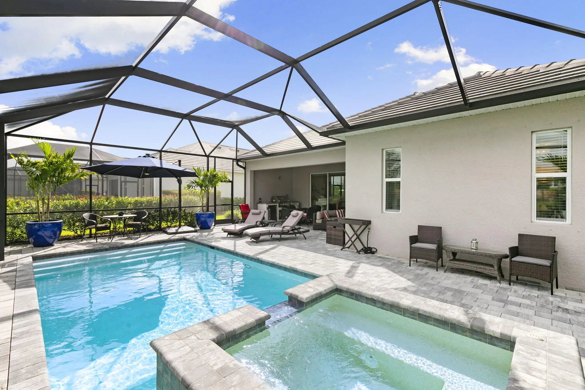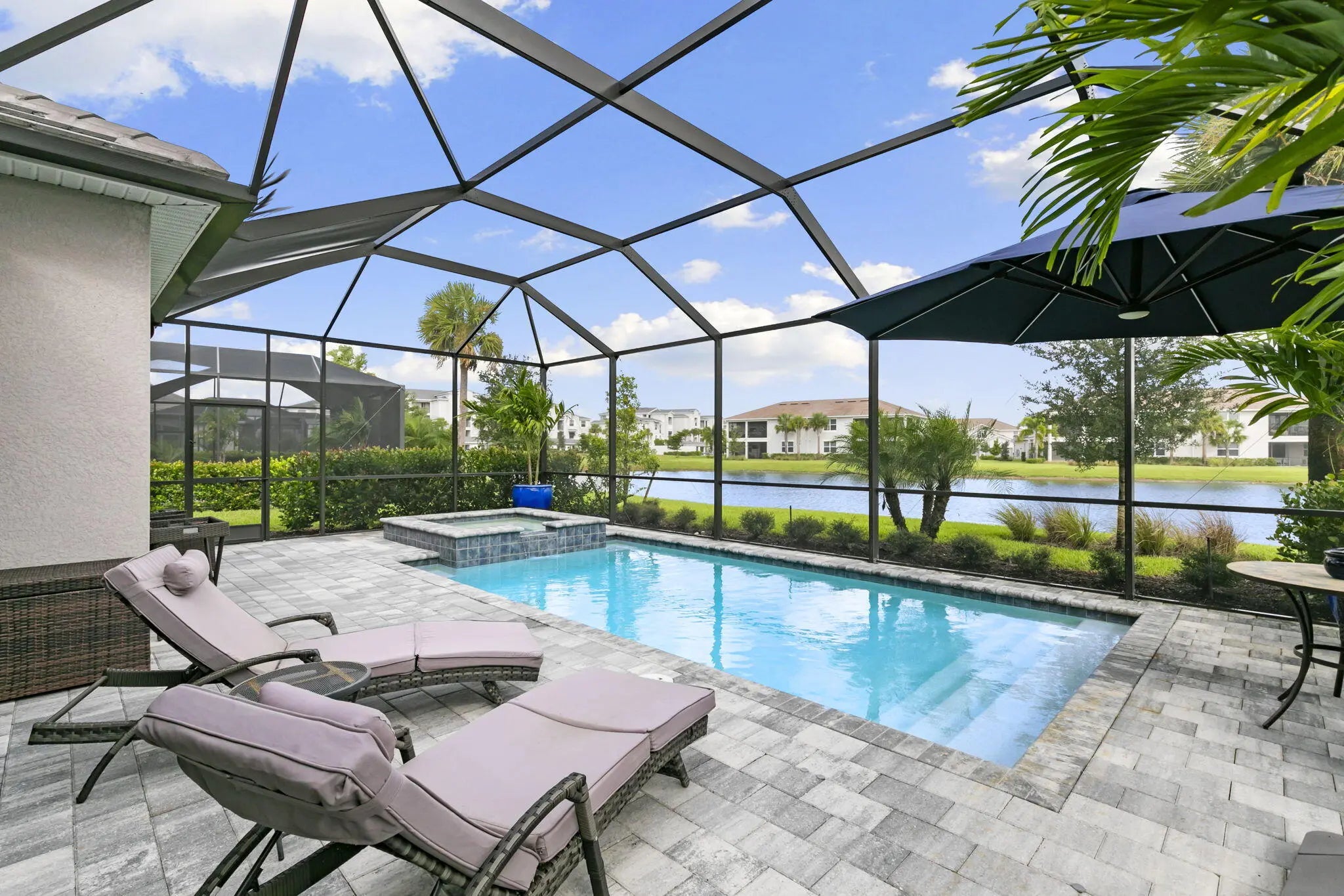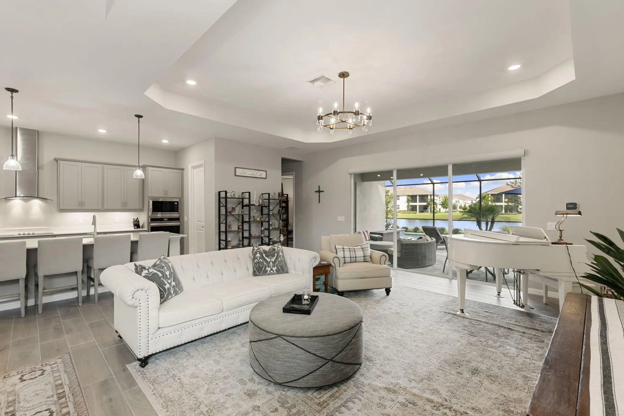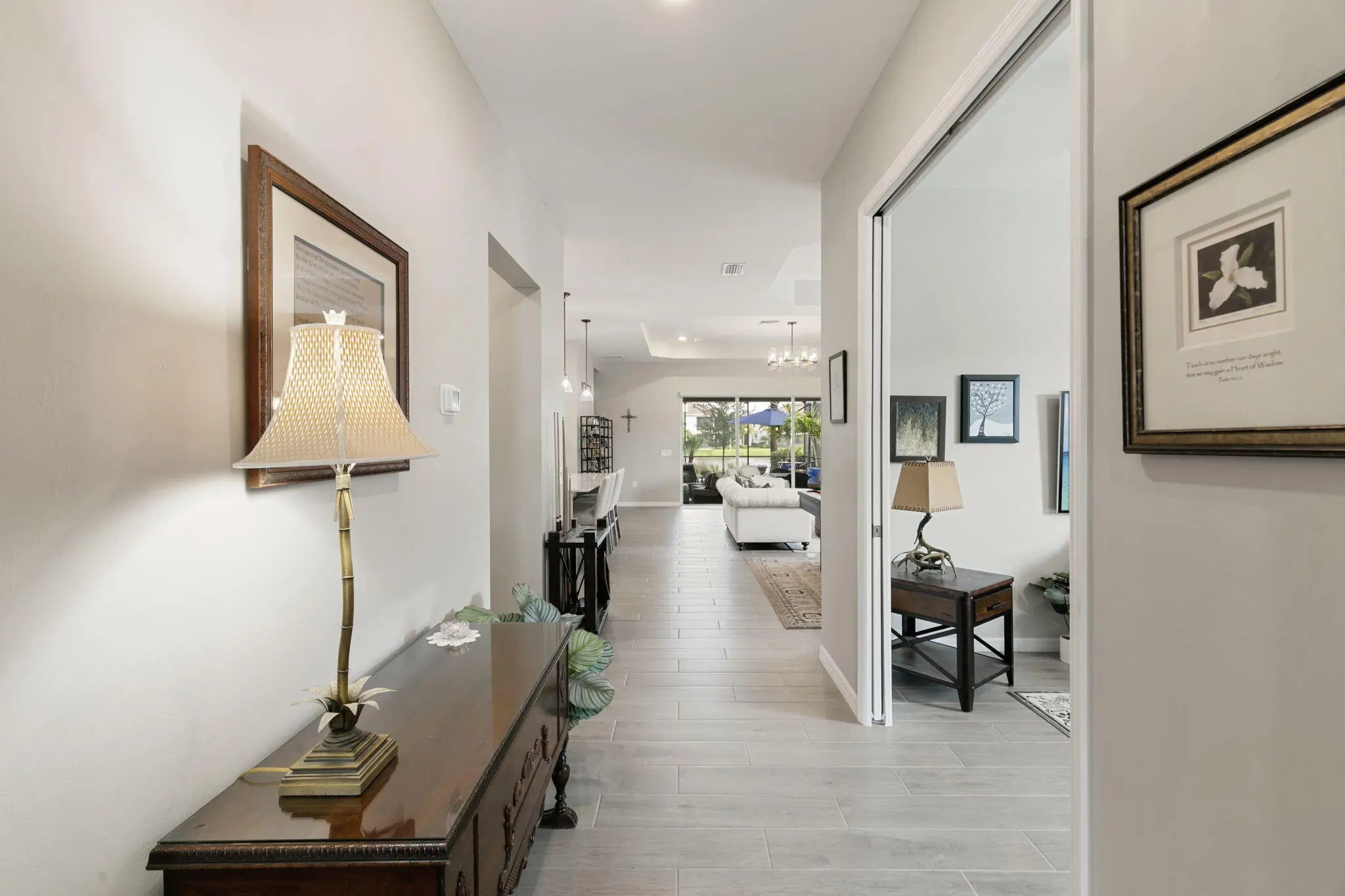 Welcome to 5789 Kingston Place, where modern elegance meets serene lakeside living in the heart of Ave Maria. Built in 2023, this better-than-new home blends contemporary style, thoughtful upgrades, and Florida charm with sparkling lake views and a private pool. Freshly painted throughout and featuring newly updated kitchen cabinets, the home feels warm and refreshed from the moment you enter. Tile flooring flows seamlessly through the open-concept layout, combining durability with modern appeal. The split-bedroom design ensures privacy, while one bedroom easily functions as a den with stylish dual pocket doors. Step outside to your upgraded patio, complete with a fully equipped outdoor kitchen, perfect for al fresco dining, entertaining friends, or simply unwinding poolside against the backdrop of tranquil lake views and northern exposure. Additional highlights include manual storm shutters for peace of mind, a spacious primary suite, and a bright, airy living area designed for both comfort and flow. Located in Ave Maria's vibrant, amenity-rich community, residents enjoy access to resort-style pools, fitness centers, tennis and pickleball courts, walking trails, and the charming Town Center with shops and dining just minutes away. This home truly offers the best of Southwest Florida living, move-in ready, beautifully upgraded, and perfectly positioned to enjoy the Ave Maria lifestyle.
