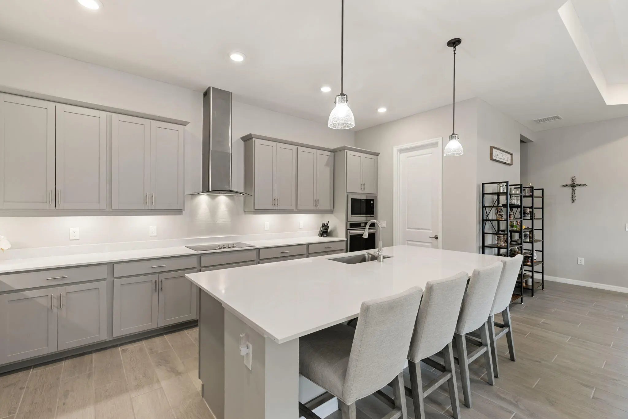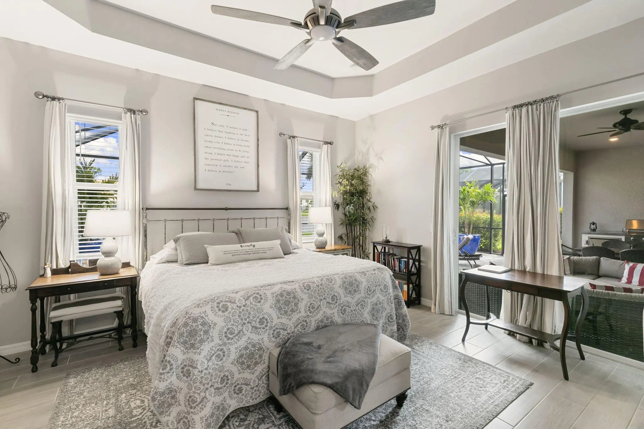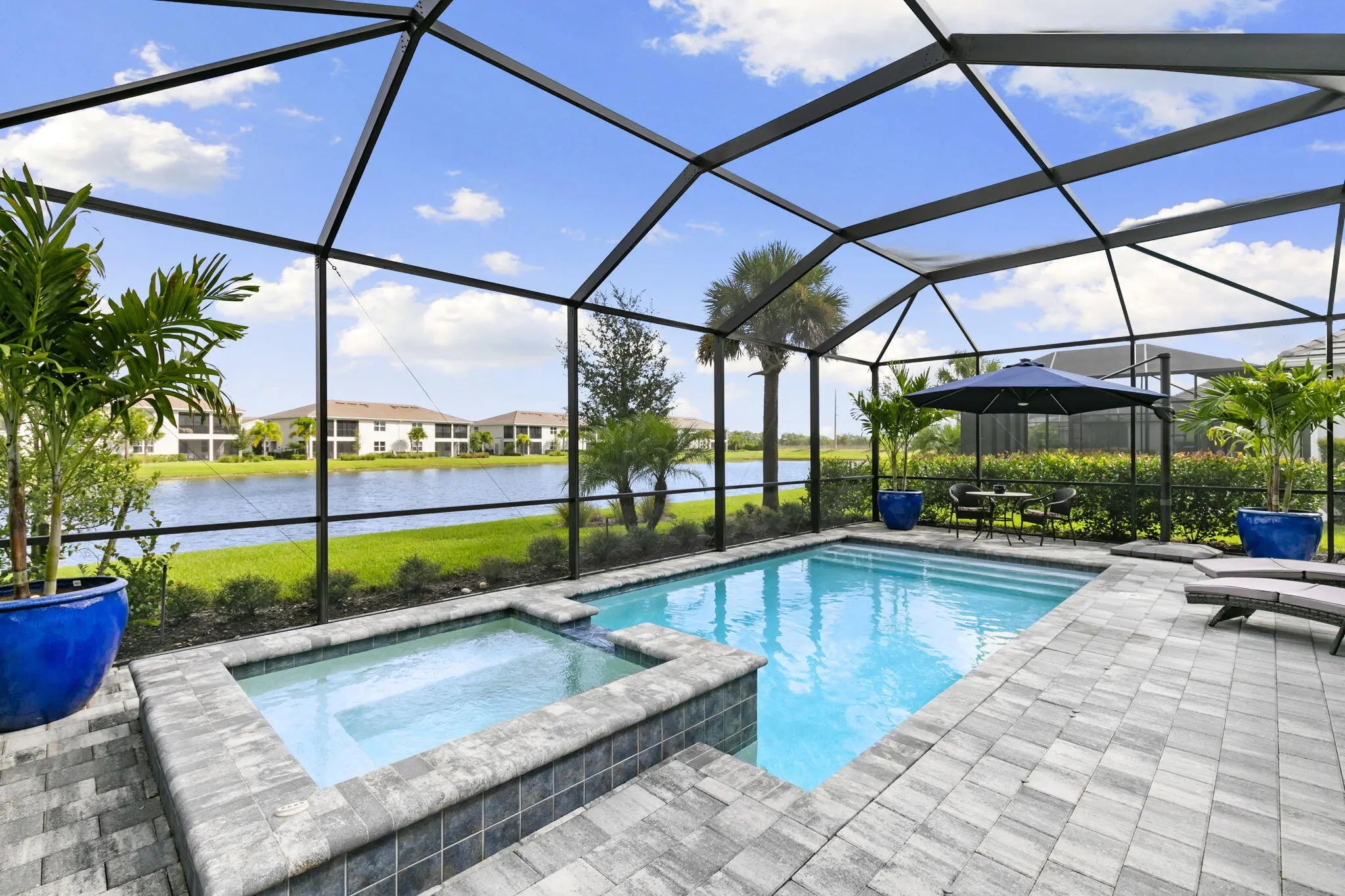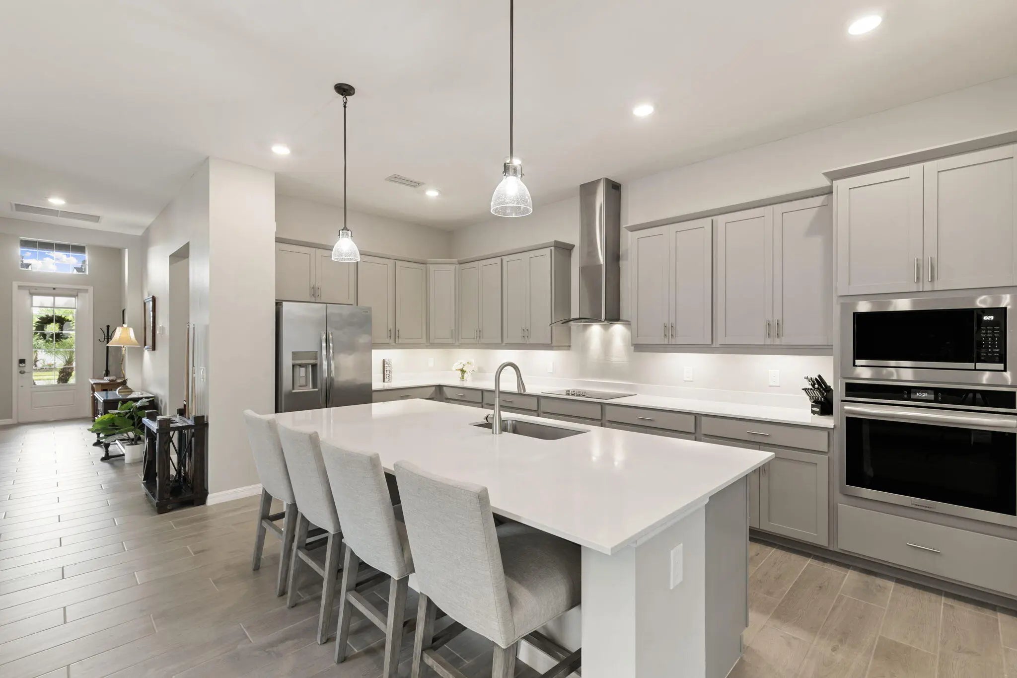 Welcome to 5789 Kingston Place, where modern elegance meets serene lakeside living in the heart of Ave Maria. Built in 2023, this better-than-new home blends contemporary style, thoughtful upgrades, and Florida charm with sparkling lake views and a private pool. Freshly painted throughout and featuring newly updated kitchen cabinets, the home feels warm and refreshed from the moment you enter. Tile flooring flows seamlessly through the open-concept layout, combining durability with modern appeal. The split-bedroom design ensures privacy, while one bedroom easily functions as a den with stylish dual pocket doors. Step outside to your upgraded patio, complete with a fully equipped outdoor kitchen, perfect for al fresco dining, entertaining friends, or simply unwinding poolside against the backdrop of tranquil lake views and northern exposure. Additional highlights include manual storm shutters for peace of mind, a spacious primary suite, and a bright, airy living area designed for both comfort and flow. Located in Ave Maria's vibrant, amenity-rich community, residents enjoy access to resort-style pools, fitness centers, tennis and pickleball courts, walking trails, and the charming Town Center with shops and dining just minutes away. This home truly offers the best of Southwest Florida living, move-in ready, beautifully upgraded, and perfectly positioned to enjoy the Ave Maria lifestyle.