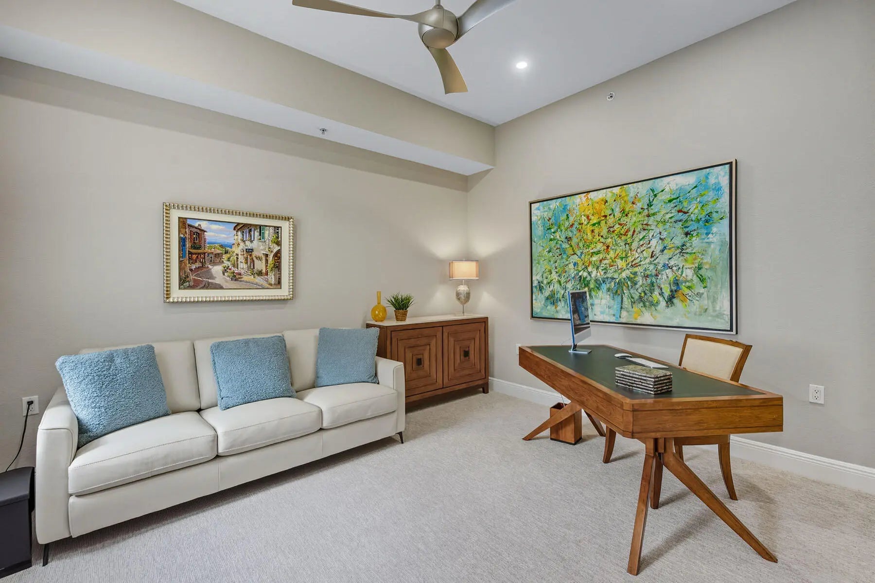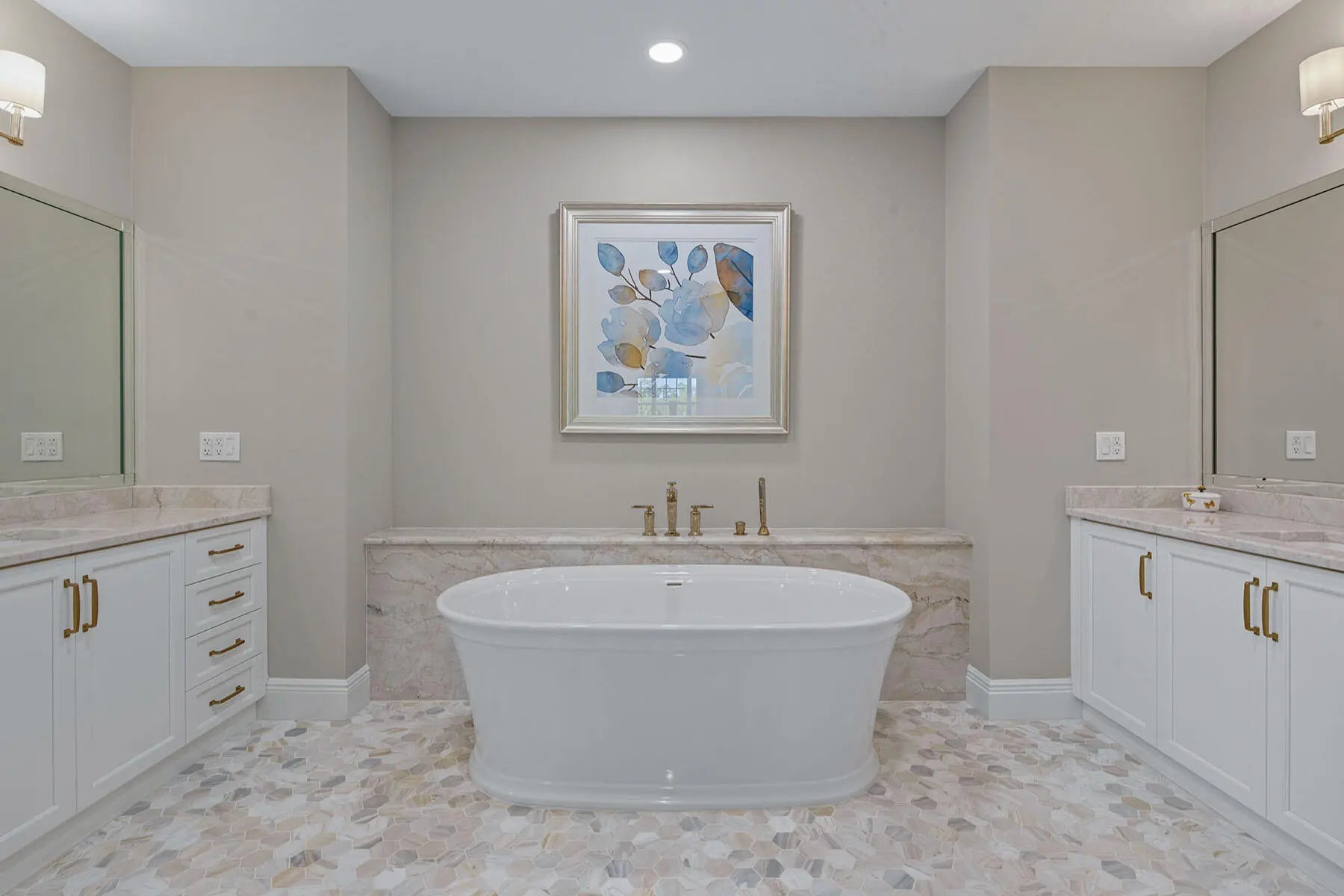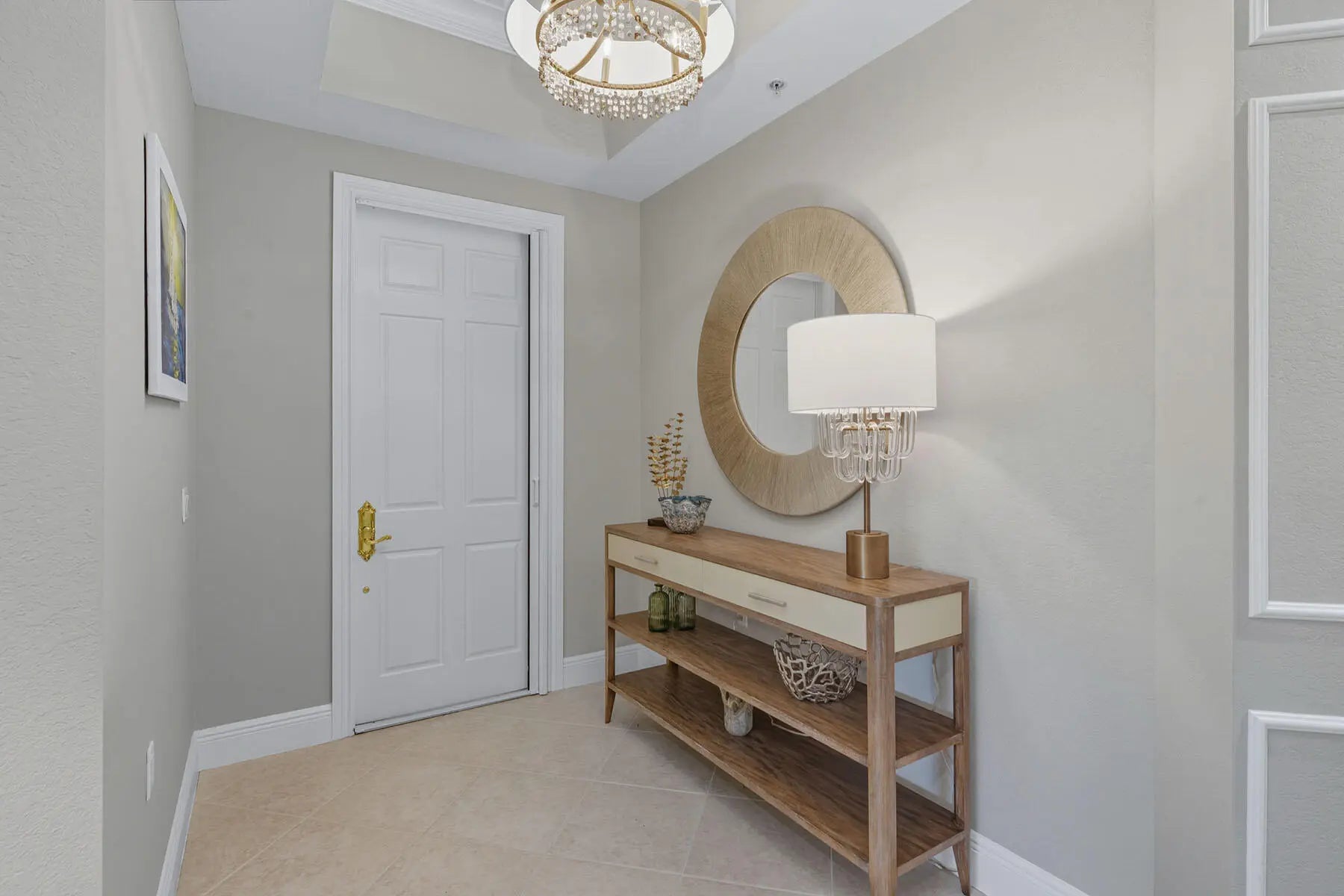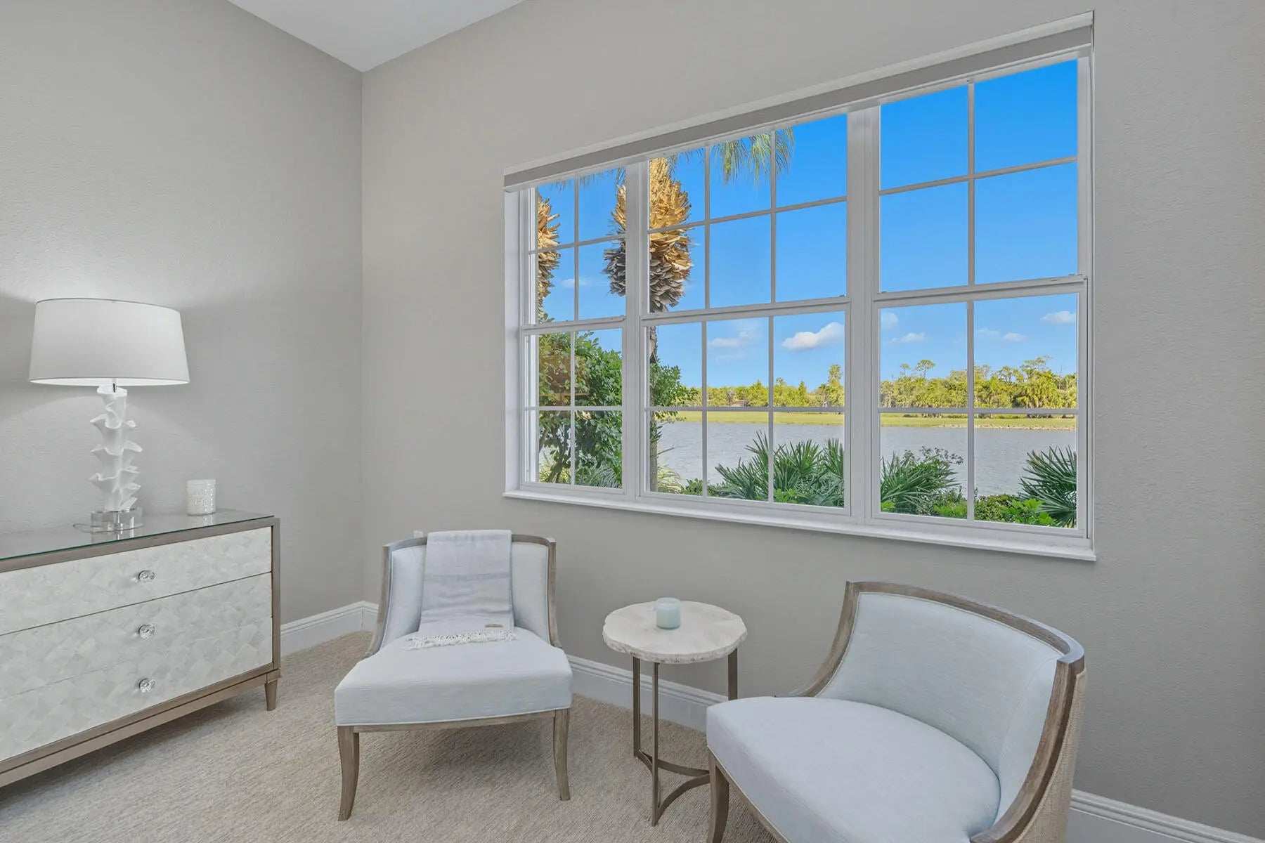 Experience refined coastal living in this beautifully renovated first-floor residence, perfectly positioned to capture tranquil lake and golf course views within the coveted Montreux enclave of Fiddler's Creek. Designed with elegance and livability in mind, this spacious three-bedroom, three-bath home lives like a single-family residence, offering a private entrance, attached two-car garage, and an open, light-filled layout. The gourmet kitchen impresses with quartzite countertops and backsplash, white cabinetry, stainless steel appliances, and a charming breakfast nook overlooking lush tropical gardens. Each of the three bathrooms has been completely renovated, showcasing elegant finishes, modern tilework, and spa-like details throughout. The serene owner's suite opens to the lanai and features dual walk-in closets and a beautifully updated bath with a soaking tub and frameless glass shower. Additional enhancements include a freshly painted interior, designer lighting, and a brand-new HVAC system, creating a move-in-ready retreat that blends comfort and modern sophistication. A screened lanai provides the ideal setting for morning coffee or evening gatherings, framed by sweeping water and golf vistas. Montreux is currently undergoing a community-wide landscaping enhancement, further elevating the neighborhood's beauty and appeal. Residents enjoy access to the award-winning Fiddler's Creek Club & Spa, offering fine and casual dining, resort-style pools, a full-service fitness center, spa, tennis, pickleball, and an active social calendar. Optional golf, beach, and marina memberships further enhance the unparalleled Florida lifestyle this residence affords.