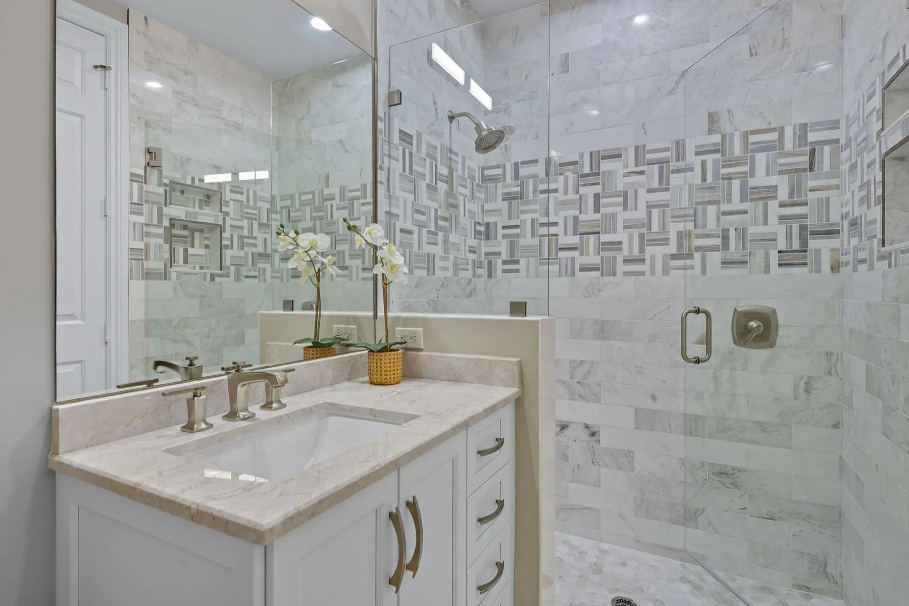 Eat-in Kitchen, Built-in Features, Custom Cabinets, Custom Mirror, Entrance Foyer, Pantry, Tray Ceiling(s), Walk-In Closet(s), Breakfast Bar, Double Vanity