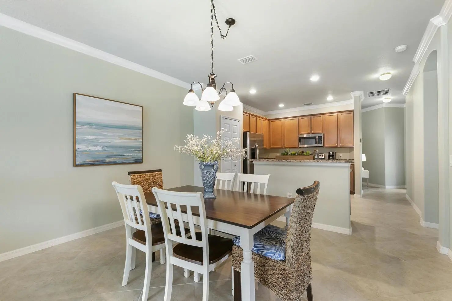 Located in the highly coveted Reflection Lakes community, this stunning lakefront 3-bed, 2-bath villa perfectly blends style and functionality. Step inside to discover an open floor plan, highlighted by elegant crown molding and neutral tile flooring—a perfect blank slate ready for your personal touch. The highlight of this home is the spacious screened lanai, complete with a private pool installed in 2022, offering the perfect backdrop for outdoor relaxation or entertaining. Move right in as this home comes fully furnished with new, modern furniture, allowing you to embrace the relaxed Florida lifestyle from the moment you arrive. The chef-inspired kitchen is equipped with stainless steel appliances, granite countertops, a pantry, and an island—ideal for hosting family and friends. One of the guest bedrooms features a versatile Murphy bed system that seamlessly transforms into a desk, optimizing both space and functionality. Reflection Lakes boasts resort-style amenities including a sparkling pool and spa, a clubhouse, low HOA fees, and no CDD fees. But that's not all! Its prime location puts you just minutes from pristine Gulf beaches, downtown Naples, and the iconic Naples Pier. Don't miss this rare opportunity to enjoy the best of the Florida lifestyle. Schedule your showing today and make this lakefront villa your new home!