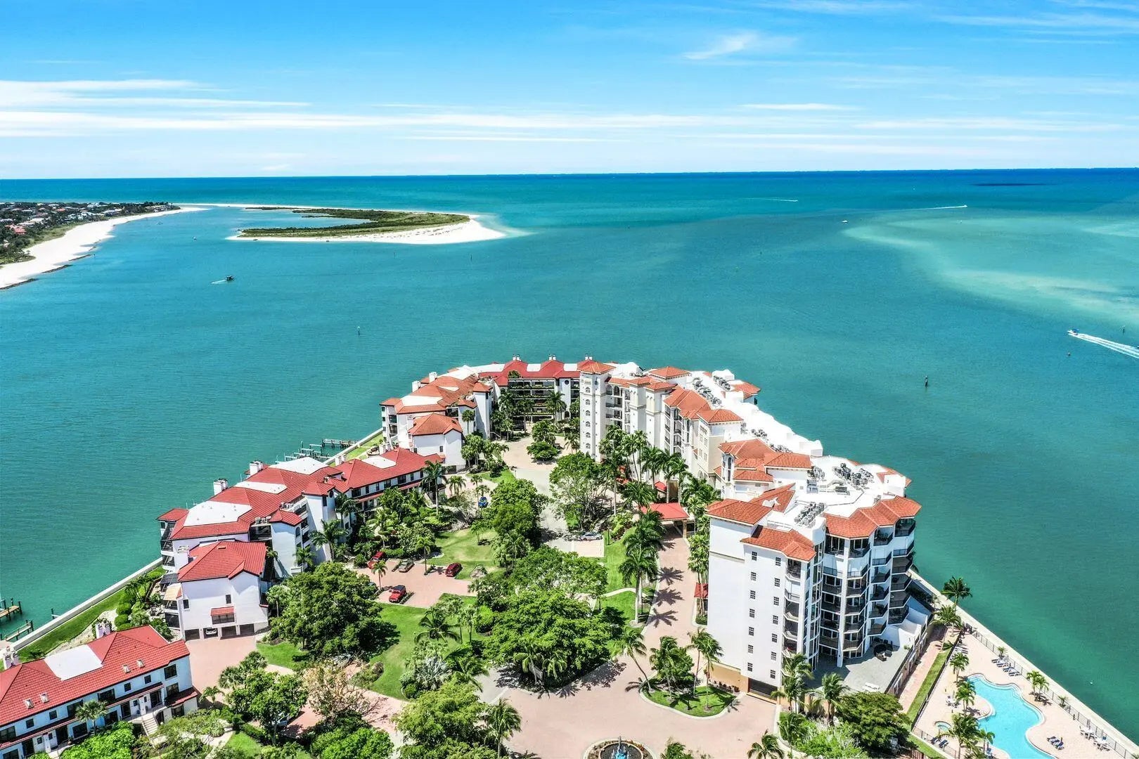 Enjoy over 3,000 square feet of luxury living right on the Gulf of Mexico. With this spectacular Twin Dolphins unit, you'll be able to stretch out, relax, and enjoy the best of Southwest Florida. Natural light comes from all directions in this spectacular home, and the floor to ceiling windows, along with multiple balconies, offer expansive views of the water, waterways, and surrounding nature. Updated with new light fixtures and electronics, this unit is truly move in ready and will please the most discriminating buyers. With each bedroom containing an ensuite bath, visits from family and friends will be a breeze. Want a little more space? Enjoy the included and fully remodeled cabana. This private cabana features a full bath and kitchenette, ready for entertaining or a perfect work from home, yet private, space. Two assigned under building parking spaces and air-conditioned storage space only add to the appeal of Twin Dolphins. The Twin Dolphin owners also have access to a rental pontoon boat that is owned by the association and is exclusively for use by the residents. An upcoming sports complex including Tennis, Pickleball, and bocce courts are also in the works for this gated community. Note: some furniture show in pictures may have been exchanged for other items.