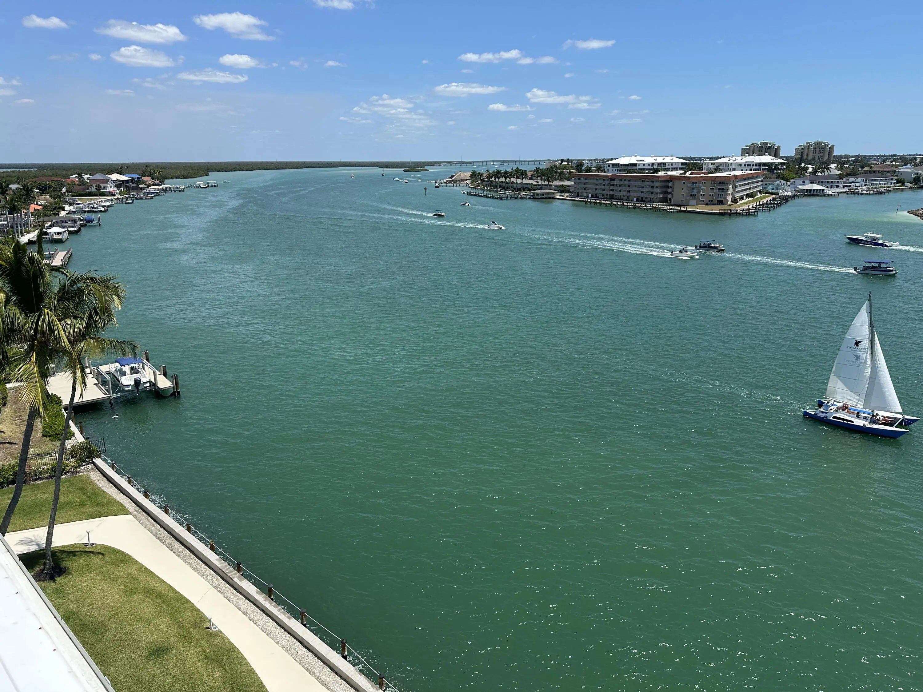 Experience the magic of the Marco River like never before. Breathe in the salt air and let your worries drift away, as you relax to the sights and sounds of the passing boats and wildlife that call your backyard home. Welcome to paradise, welcome to Marco Towers 505! Words can not express how spectacular the panoramic water views are and photos do not do it justice. This one bedroom, one bath condo has been completely updated from the floor to the ceiling, with no expense spared. The spacious floor plan provides over 1,050 sq.ft. of living area with a large balcony to give you lots of outdoor space to take in the breath-taking views of the 10,000 Islands, Marco Bridge, Big Marco River, Hideaway beach and the Gulf of America. Imagine waking up in your bed to the sound of dolphins splashing in the water or birds diving and feeding on the baitfish below. The bedroom is spacious with sliders out to the balcony and a large bathroom with two vanities and a big walk-in shower. The kitchen has custom cabinets, quartz counters and stainless appliances that are sure to please any chef. Fishing off the dock is truly world class and makes catching a big Tarpon , Snook or fish of a lifetime, not only possible, but easy to do on a daily basis. The large heated swimming pool is the perfect place to lounge in the sun and enjoy the fresh breeze that's always there to greet you. When you're done working on your tan, grab a cold beverage and kick back in the shade of the tiki hut, sitting on the water's edge, where you can watch all the action. Everyday, whether you are in the living room, kitchen or the bedroom, you will be captivated with unparalleled water views, beautiful sunrises and amazing sunsets that you will never forget. You can literally watch the dolphins playing, birds diving, boats passing by and everything else that makes the Marco River so magical, right from your living room. And the views are just as mesmerizing at night as they are during the day. Also included is a covered carport to keep your car protected from the sun and elements. Isles of Capri is a subtropical island that boasts and abundance of wildlife, four great restaurants and three marinas. Located one mile from Marco Island & only 20 minutes away from Downtown Naples with its sophisticated shopping & five star dining. Our area is famous for its white sand beaches, world class fishing & boating and fantastic golfing. Capri is the perfect place to sit back, relax, unwind and let the sights, sounds and smells sooth your mind, body and soul