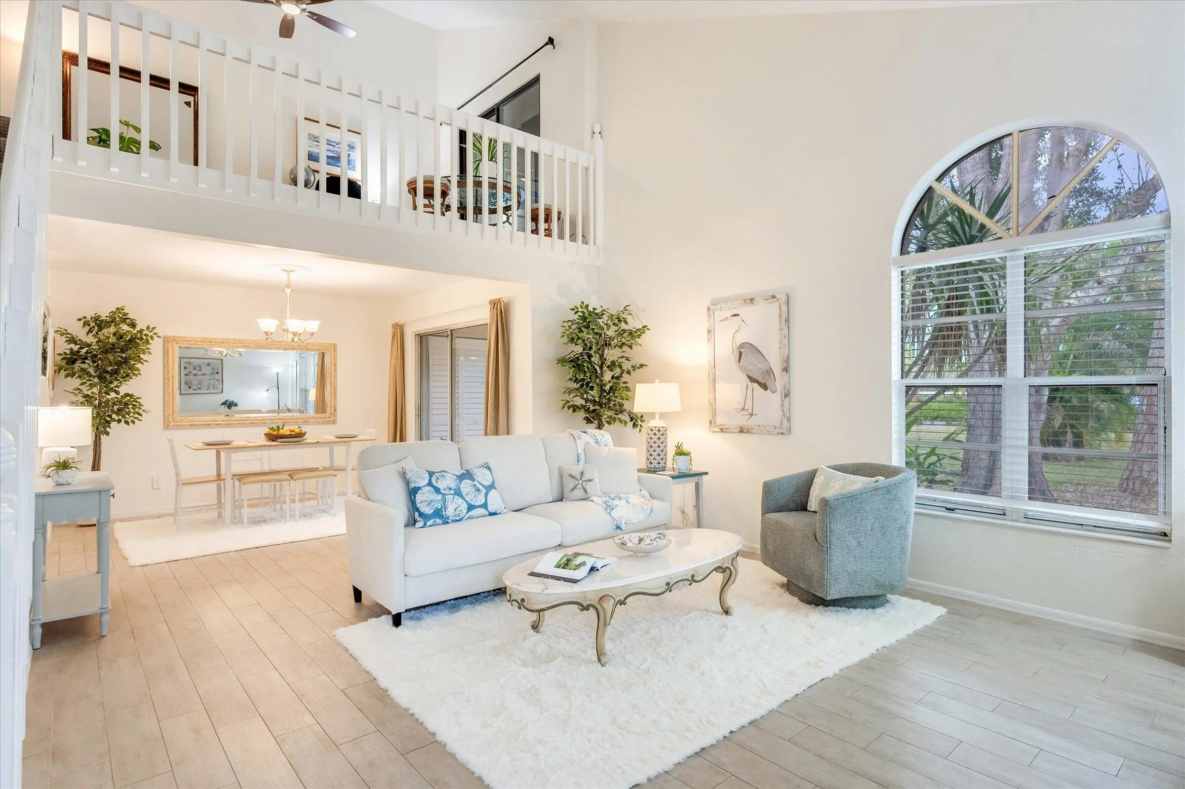 Charming villa condominium with tranquil views of green space. Two story condo with primary suite on main floor, guest bedroom and versatile loft area plus screened lanai upstairs. Soaring ceilings and lots of windows give this space a bright open feel. Newly remodeled primary bath, new flooring through out, lots of kitchen cabinets and stainless steel appliances are great features. 2 assigned parking spaces convenient to the unit. Excellent storage space. Convenient in condo stackable washer and dryer. Furnishings negotiable. Quarterly Maintenance fee is $3087.