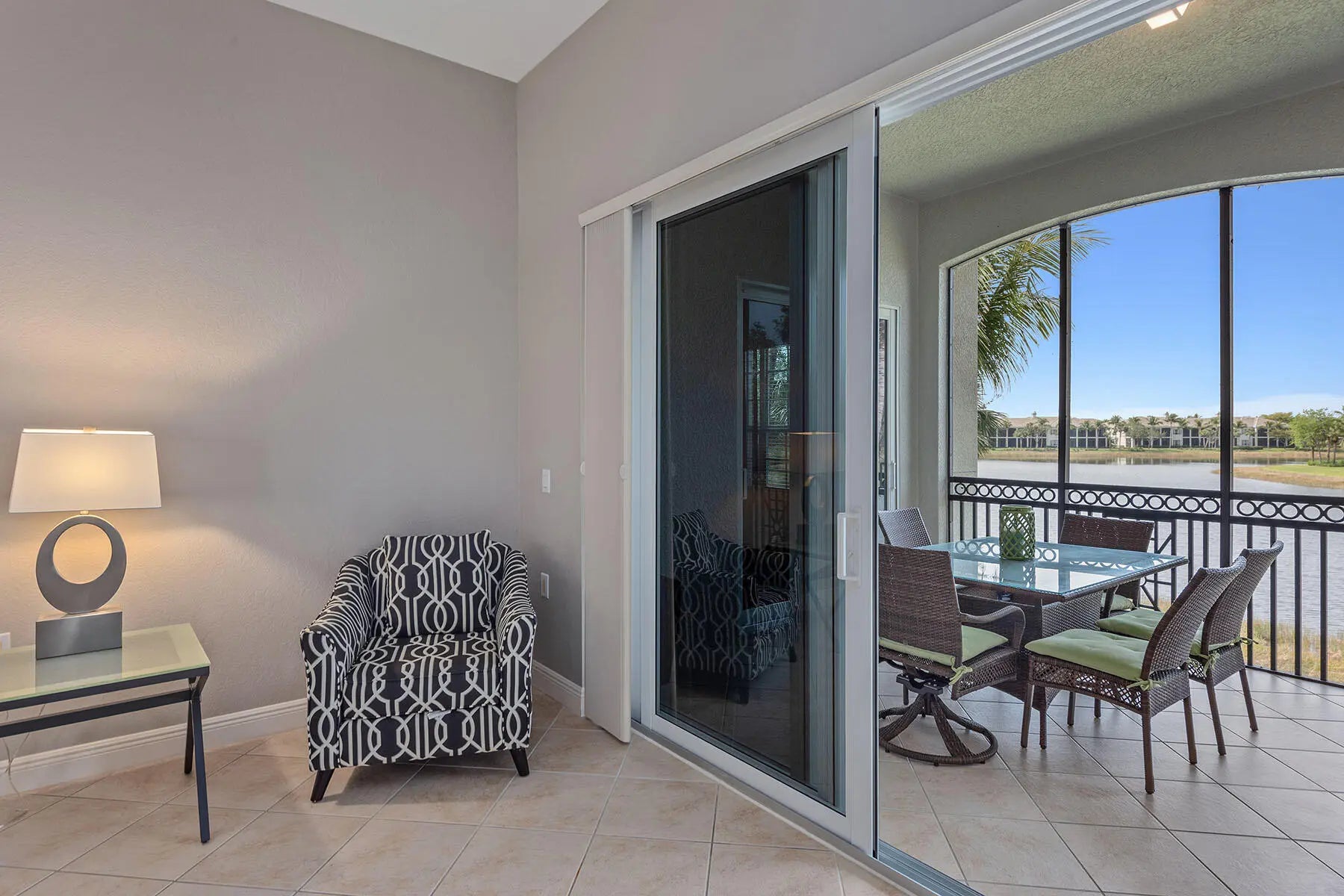 This beautifully maintained Carona floor plan coach home in Laguna at Fiddler's Creek offers a peaceful Southwest Florida retreat with long, tranquil lake views, abundant natural light, and desirable southwest exposure. Designed for elevated resort-style living, the residence features a spacious covered lanai overlooking serene water vistas, creating an inviting backdrop for everyday relaxation or entertaining. With three bedrooms, three baths, and a two-car garage, the thoughtfully designed layout includes diagonal tile flooring throughout the main living areas, high ceilings, and a split-bedroom floor plan that balances privacy and comfort. The inviting living room is enhanced by modern ceiling fans and glass sliders that open seamlessly to the lanai, filling the space with natural light and calming lake views. The kitchen blends style and functionality with shaker-style cabinetry, granite countertops, a tumbled marble tile backsplash, recessed lighting, and a breakfast bar counter. Stainless steel GE appliances—including a gas range, newer microwave, refrigerator/freezer, and dishwasher—complement the space, while a walk-in pantry and cozy dining area add everyday convenience. The owner's suite is a tranquil retreat with direct lanai access, soothing water views, and walk-in closets with wood-slatted shelving. The en-suite bath features dual vanities with a full-width mirror and makeup counter, a glass-enclosed walk-in shower, and a separate soaking tub. Two guest bedrooms provide comfortable accommodations, each with walk-in closets and en-suite baths with walk-in showers, including one accessed through elegant double doors with arched windows. Additional highlights include impact doors and windows replaced in 2021, a new building roof in 2021, and a spacious laundry room with utility sink, storage closet, and GE washer and dryer. The expansive screened lanai with covered outdoor living space offers the ideal setting to unwind while enjoying sweeping lake views. Residents of Fiddler's Creek enjoy an award-winning, gated community with newly completed 2025 enhancements, including an updated resort-style pool with waterfalls and slides, an upgraded Gator Grille restaurant, and 10 new pickleball courts. The renovated Clubhouse features a world-class fitness center, six Har-Tru tennis courts, and a hot tub, sauna, and steam room. Scenic walking and biking paths and outstanding dining options enrich daily living. Optional memberships—with no golf waiting list—offer access to the renovated championship course, new golf clubhouse, marina, and private beach club.