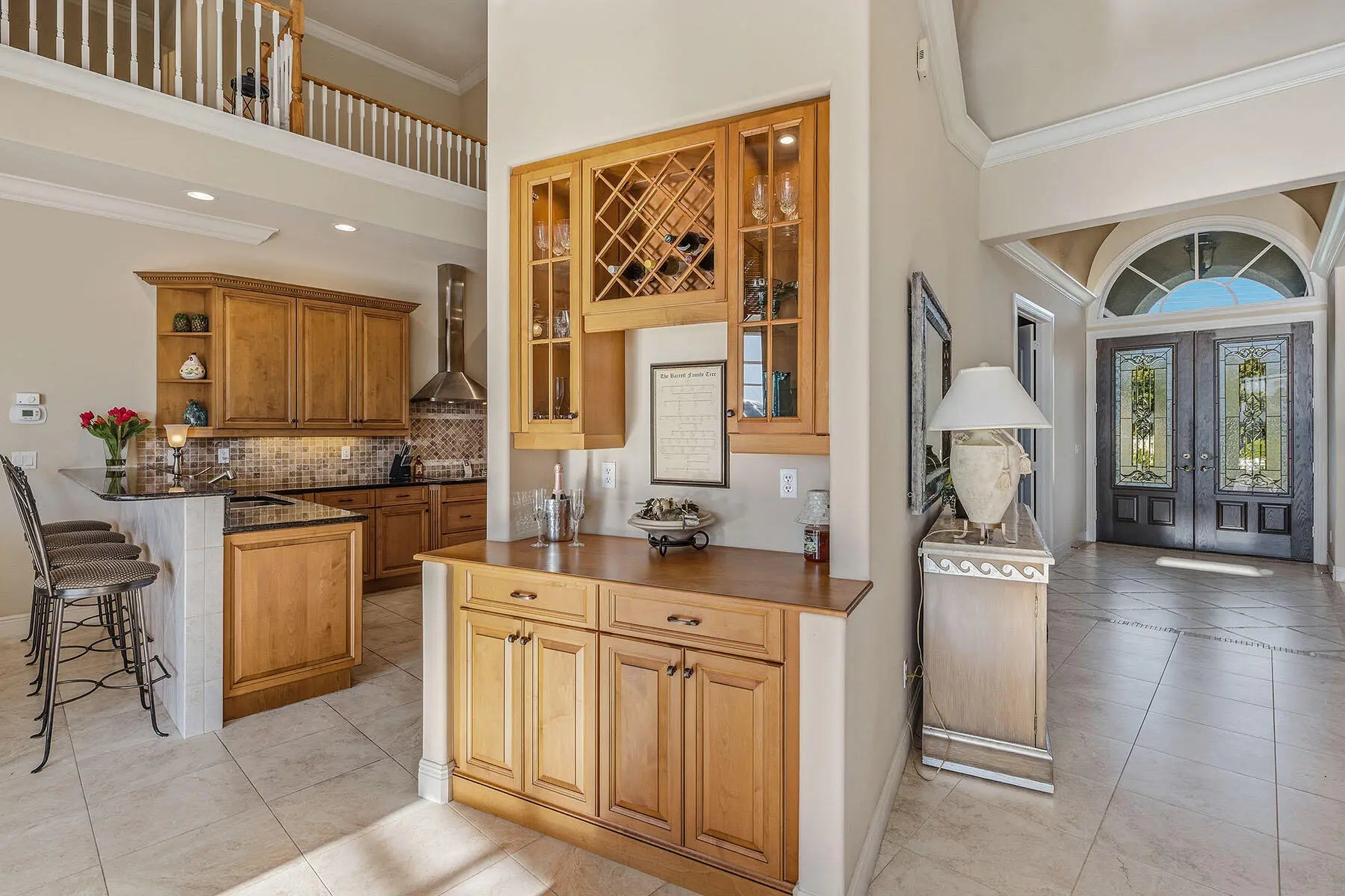 Built-in Features, Custom Cabinets, Custom Closets, Entrance Foyer, French Doors, Pantry, Tray Ceiling(s), Volume Ceiling(s), Walk-In Closet(s), Breakfast Bar, Double Vanity