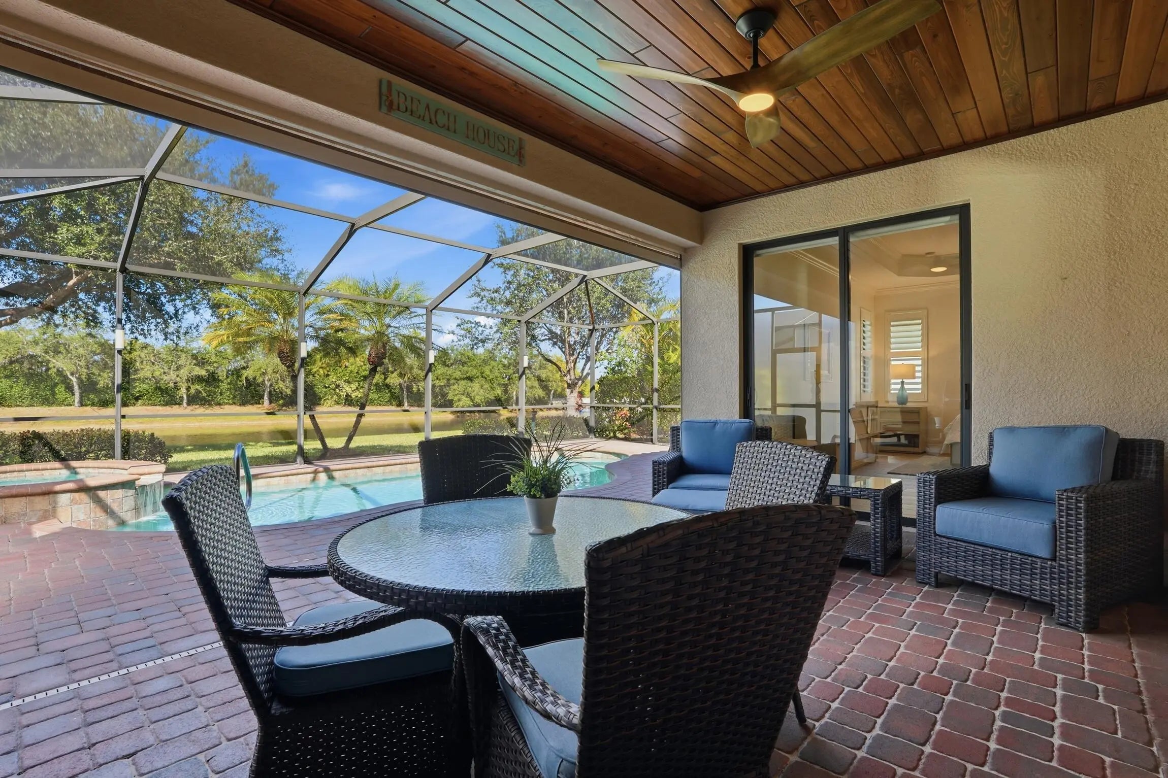 Discover the essence of Naples resort living in this beautifully maintained single-story residence, ideally situated in the highly desirable Millbrook neighborhood of Fiddler's Creek. With four bedrooms, two baths, tranquil lake views, and a thoughtfully designed open floor plan, this home offers the perfect balance of comfort, elegance, and effortless indoor-outdoor living. Sun-filled living spaces flow seamlessly into the well-appointed kitchen and open living and dining areas, creating an inviting setting for entertaining, family gatherings, or relaxed everyday living. The private primary suite is a true retreat, featuring dual walk-in closets and a spa-inspired bath with dual vanities, a soaking tub, and a walk-in shower. Guest bedrooms are thoughtfully positioned to provide privacy and flexibility for visitors or home office needs. Step outside through impact-resistant sliding doors to a stunning screened lanai overlooking peaceful lake views. This outdoor oasis features a heated pool, custom wood-paneled ceiling, ambient lighting, and a fully equipped outdoor kitchen with natural gas grill—ideal for hosting or unwinding in true Florida style. Additional highlights include an attached garage with two overhead hanging storage racks for exceptional organization and storm smart hurricane screens on the lanai for added convenience. Residents of Fiddler's Creek enjoy access to a newly renovated, award-winning clubhouse and spa, state-of-the-art fitness center, resort-style pools, tennis and pickleball courts, on-site dining, and an active social calendar. Optional beach, marina, and golf memberships further enhance the lifestyle. Perfectly located just minutes from Marco Island, downtown Naples, world-class beaches, shopping, and dining, this exceptional home offers an unmatched blend of sophistication, relaxation, and luxury resort living.