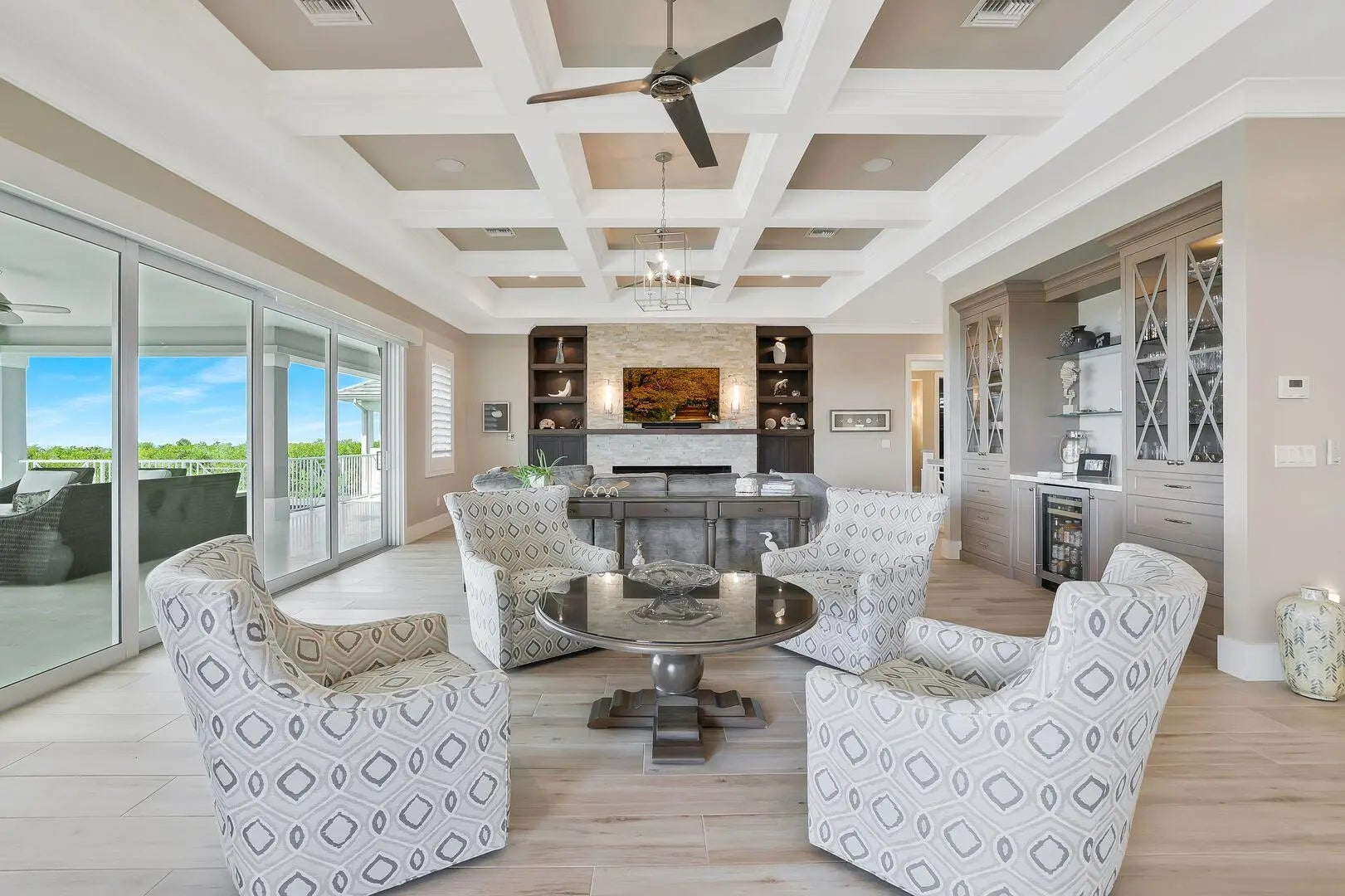 Eat-in Kitchen, Built-in Features, Custom Cabinets, Custom Closets, Elevator, Entrance Foyer, Gas Fireplace, Pantry, Sound System, Tray Ceiling(s), Volume Ceiling(s), Walk-In Closet(s), Breakfast Bar, Double Vanity