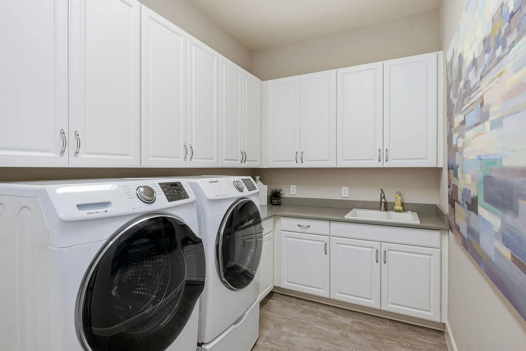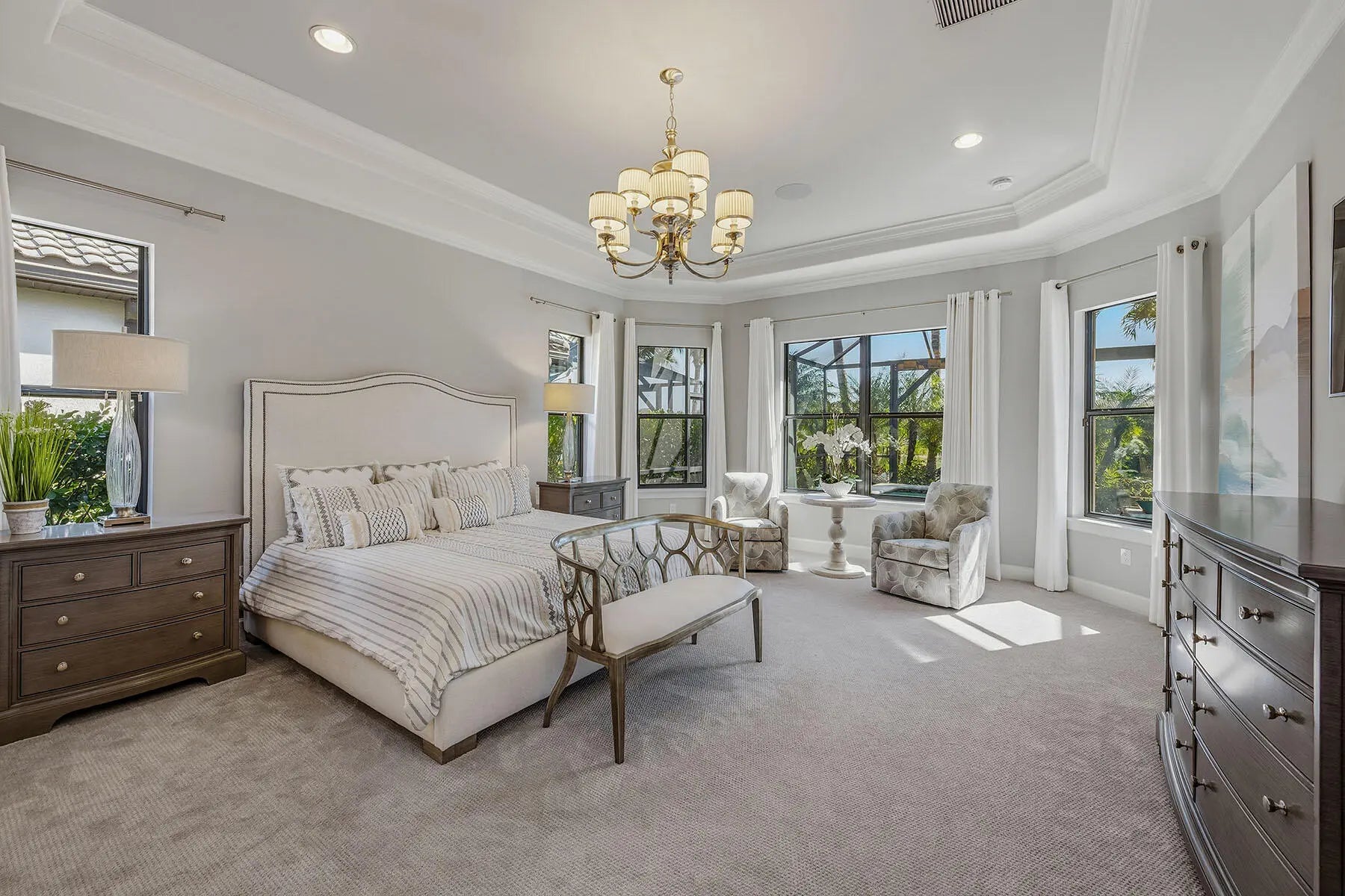 Eat-in Kitchen, Built-in Features, Custom Cabinets, Custom Closets, Custom Mirror, Entrance Foyer, French Doors, Pantry, Tray Ceiling(s), Walk-In Closet(s), Breakfast Bar, Double Vanity